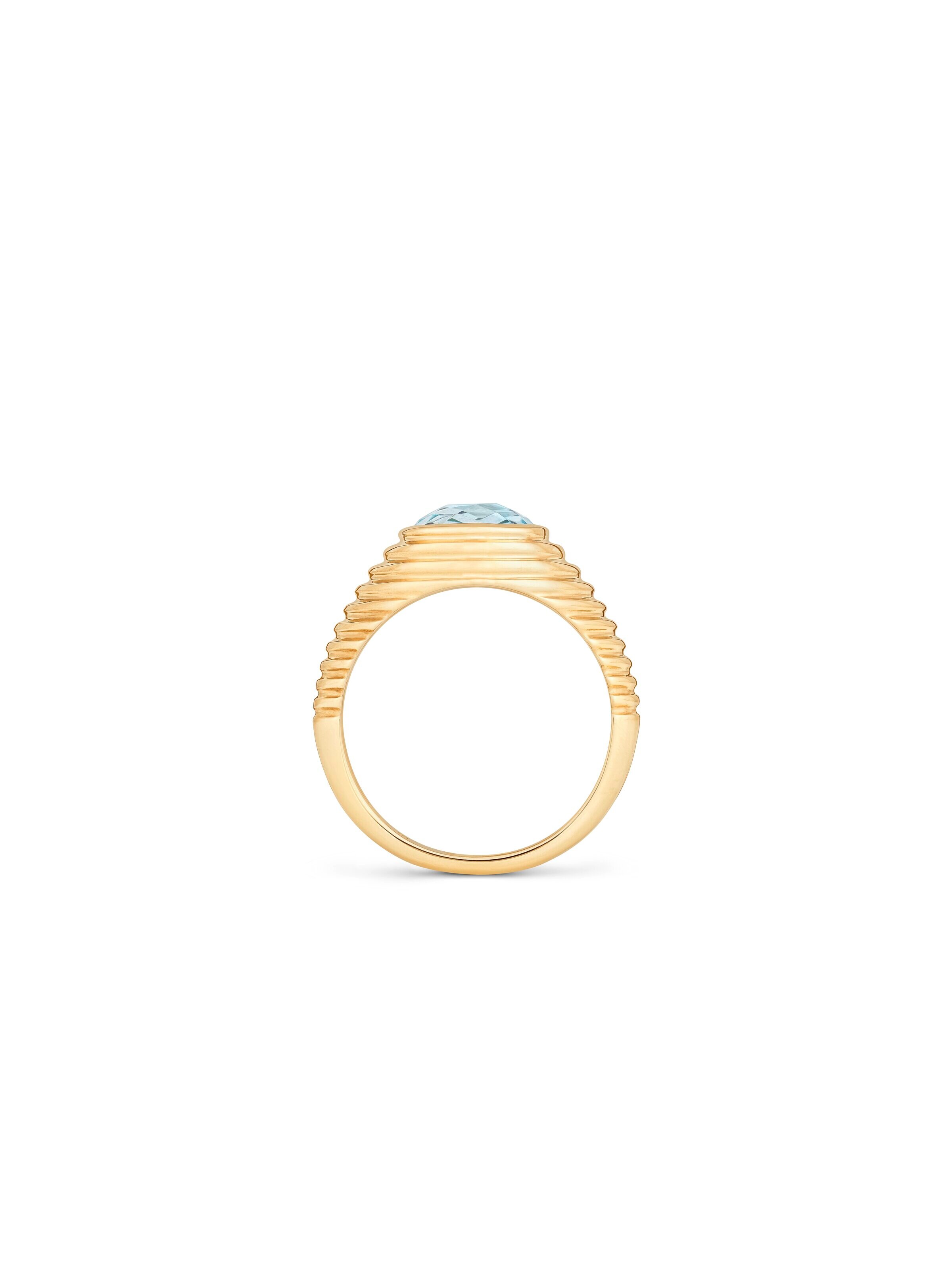 Markantes Design mit leuchtendem Eyecatcher. Der Ring Twist von Fine Jewelry interpretiert das Motiv des gedrehten Bandes in einer klaren, modernen Form. Aus 18k Gelbgold gefertigt, trägt der Ring einen facettierten Topas in zarter Krappenfassung, dessen intensives Blau bei jeder Handbewegung schimmernd zur Geltung kommt. Ob einzeln getragen oder im Zusammenspiel mit weiteren Ringen, dieses Schmuckdesign setzt einen frischen Farbakzent, der moderne Looks stilvoll abrundet.