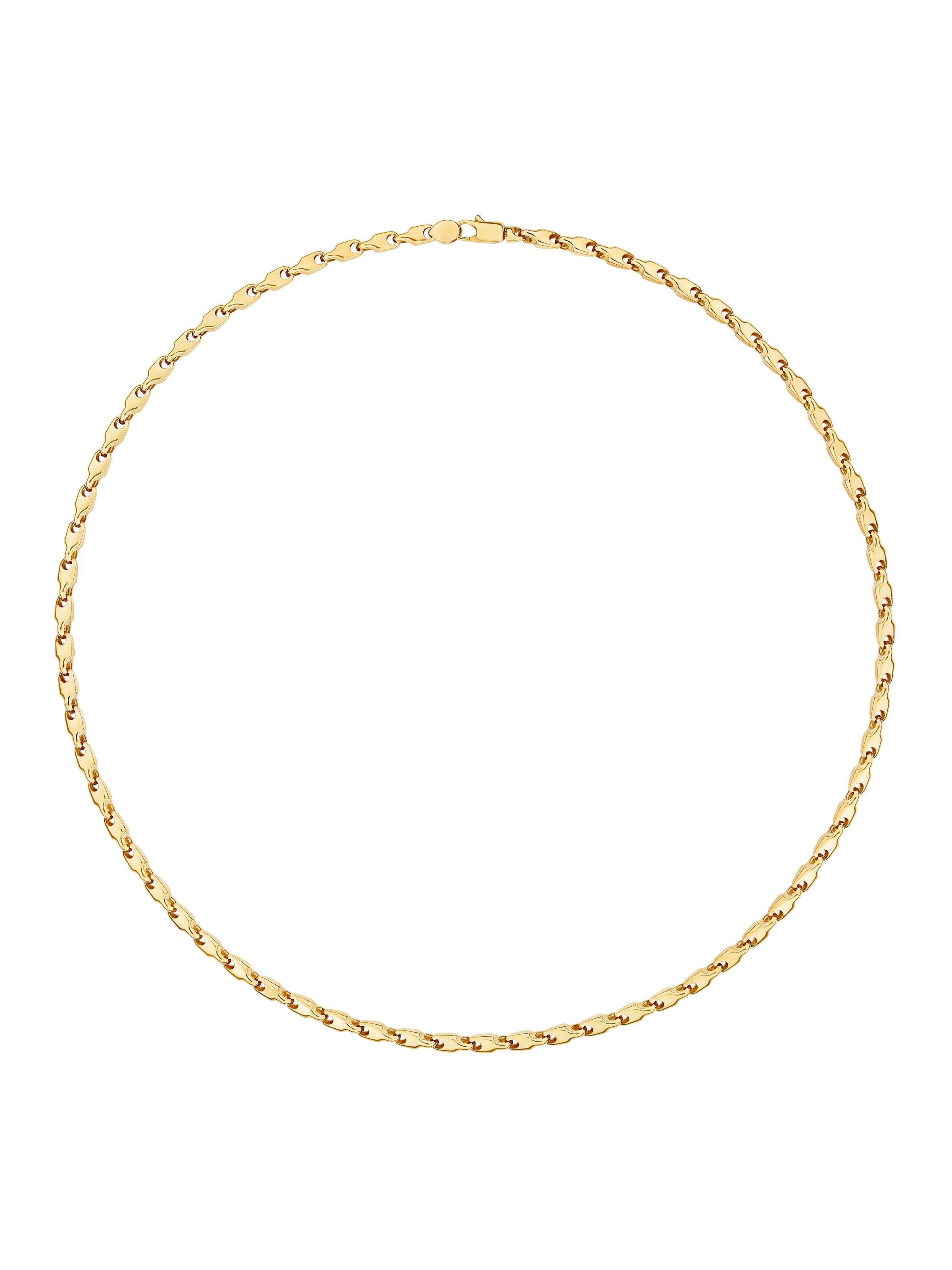 Auch Klassiker dürfen außergewöhnlich sein: Die Kette Classics von Fine Jewelry aus 18k Gelbgold präsentiert sich als modern interpretierte Fantasiekette. Die feinen Glieder erzeugen bei jeder Bewegung Lichtreflexe und unterstreichen sowohl minimalistische als auch ausdrucksstarke Looks. Mit ihrer Länge von 42 Zentimetern liegt sie nah am Hals und eignet sich perfekt als Basis eines raffinierten Layerings. Ein Karabinerverschluss sorgt für Sicherheit.