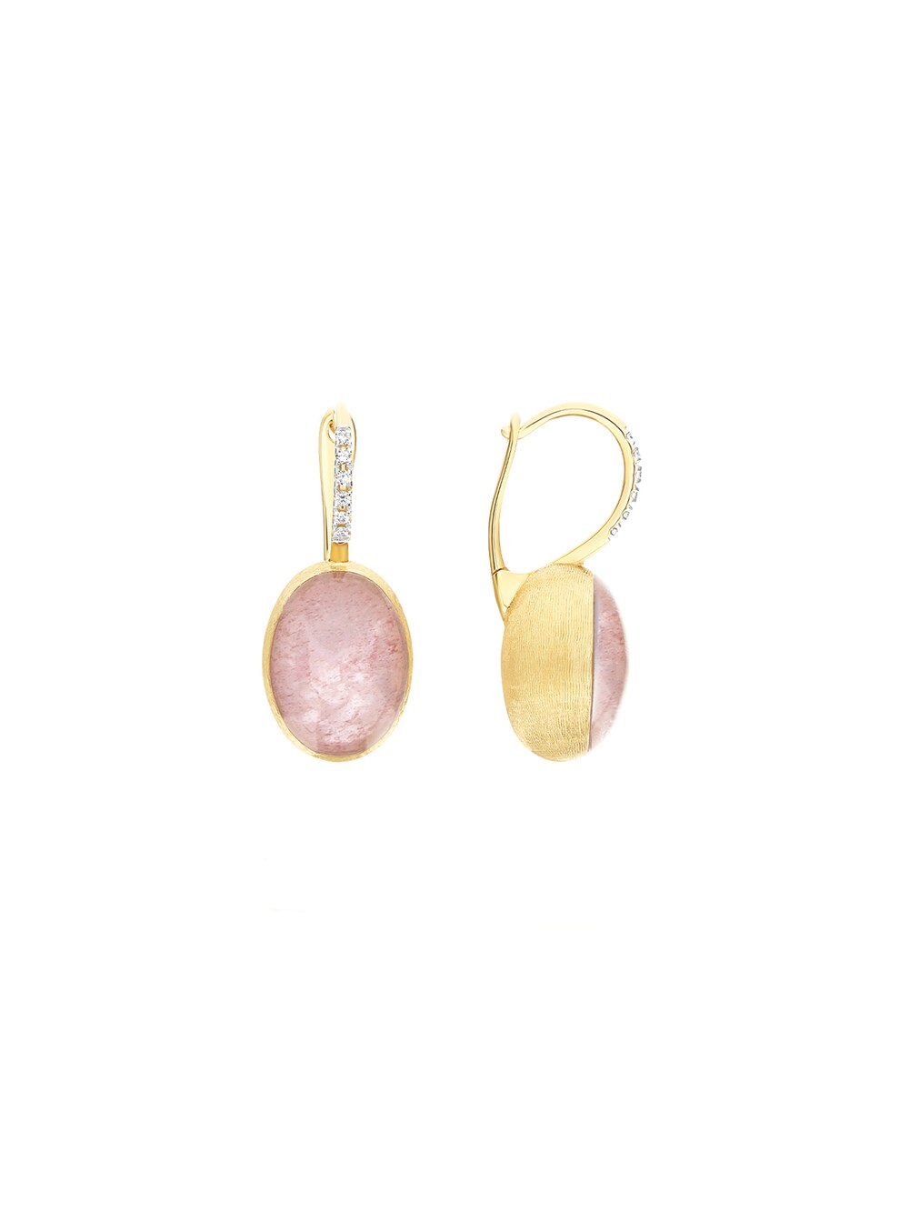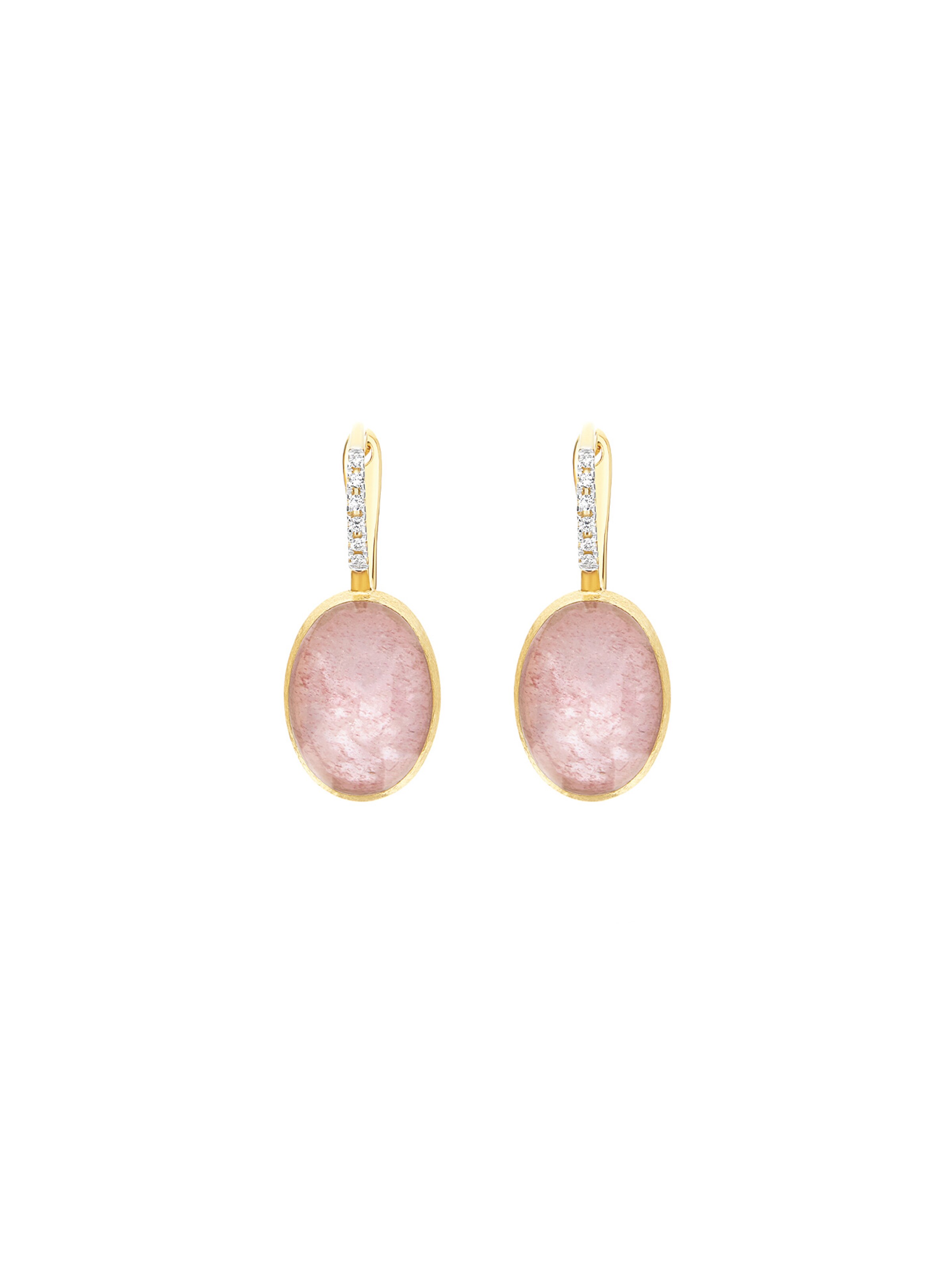 Ohrringe Boules M 18k Gelbgold, 2 Erdbeerquarze 8,00 ct, 12 Brillanten 0,07 ct | Referenz-Nr. 60OR0948