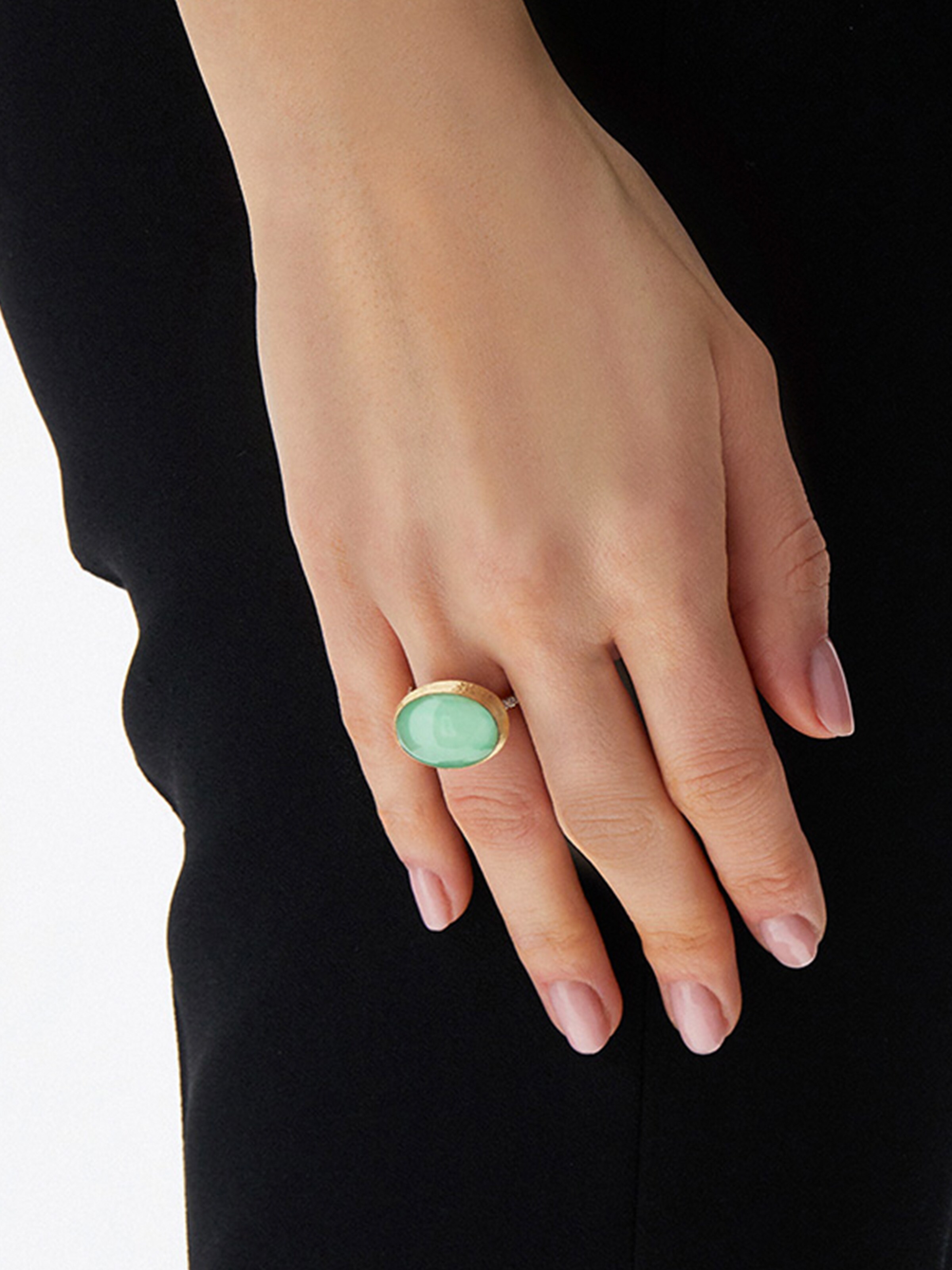 Ring Boules L 18k Gelbgold, 1 Jadeit 9,00 ct, 10 Brillanten 0,12 ct | Referenz-Nr. 60RG2178