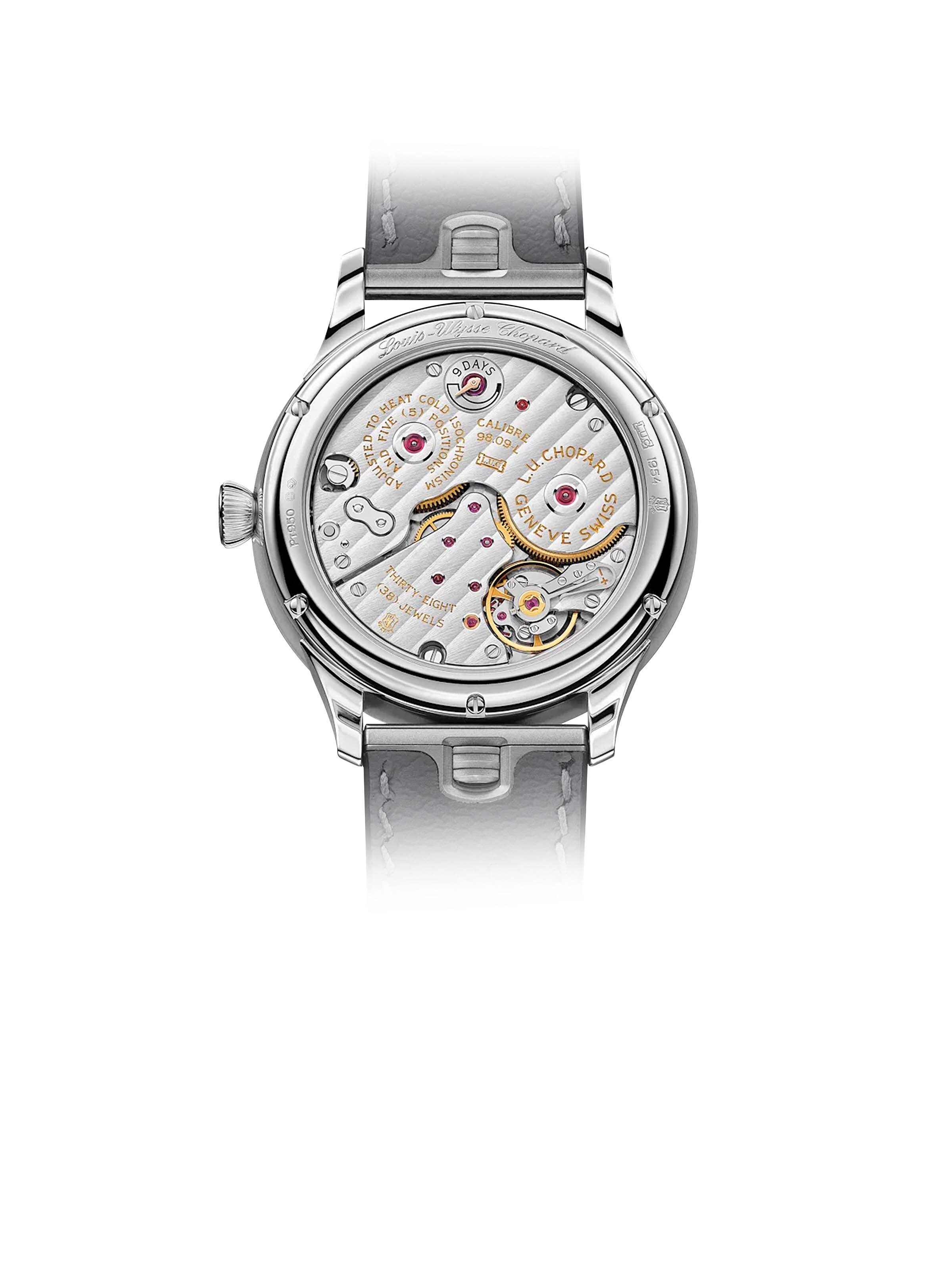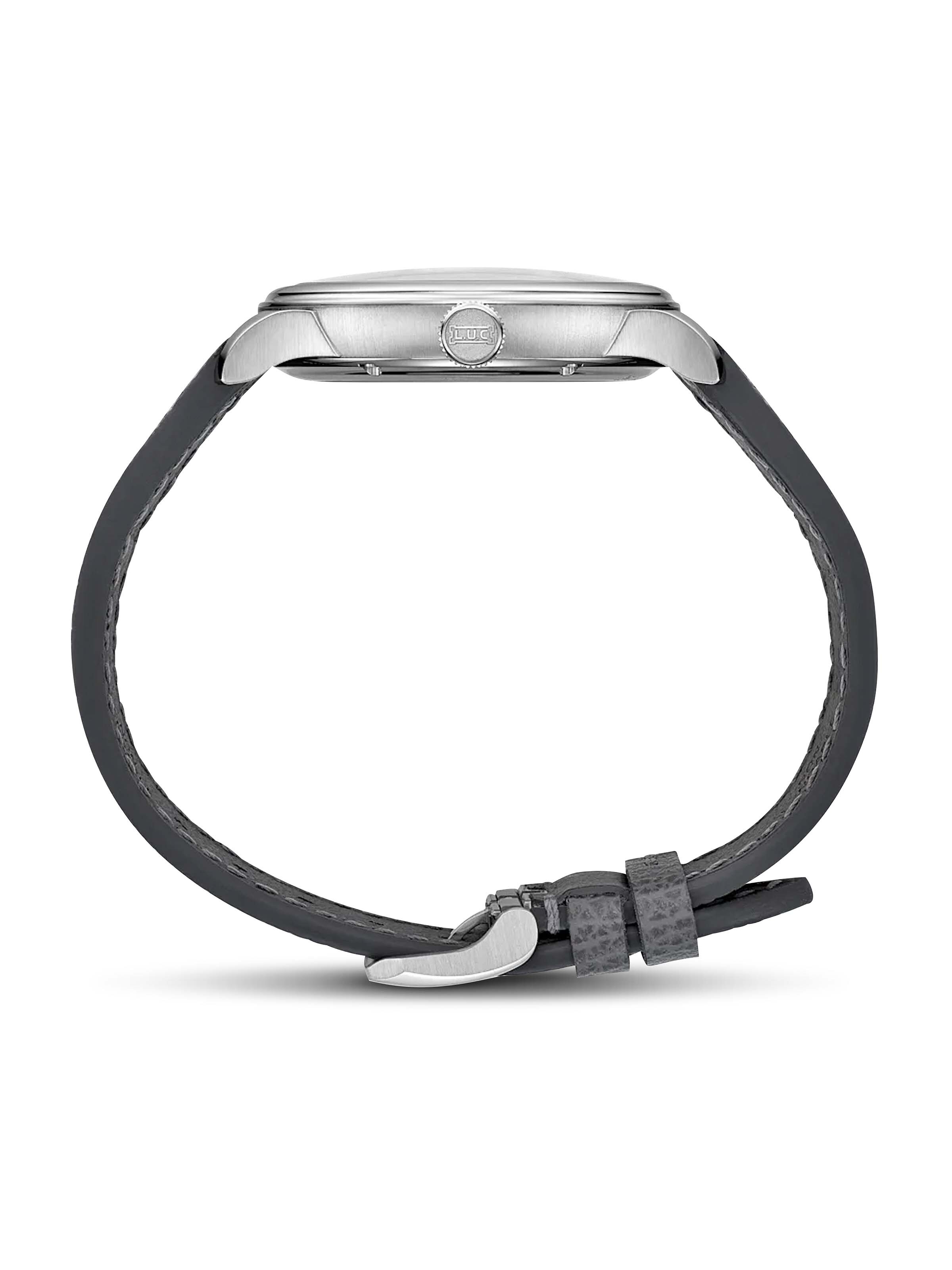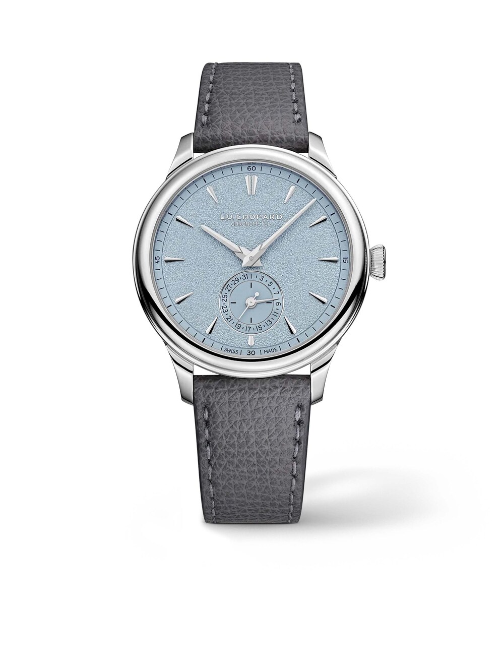 L.U.C Quattro Mark IV 39 mm, Platin mit grauem Kalbslederarmband, Handaufzug-Manufakturkaliber L.U.C. 98.09-L mit kleiner Sekunde, Gangreservenanzeige und Datumsanzeige | Referenz-Nr. CH030117