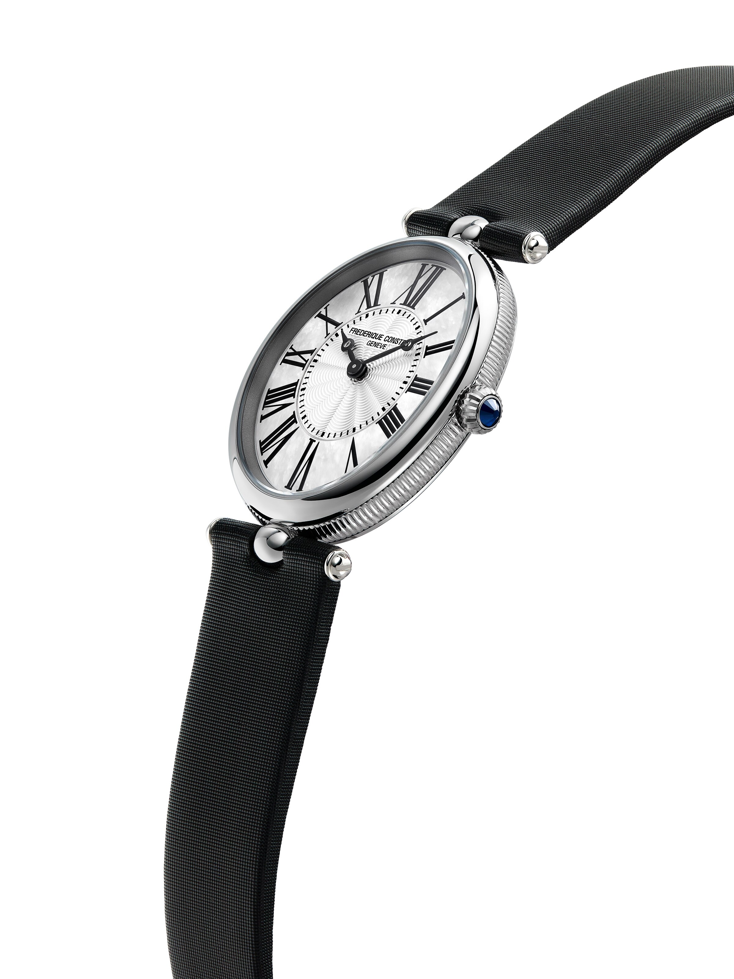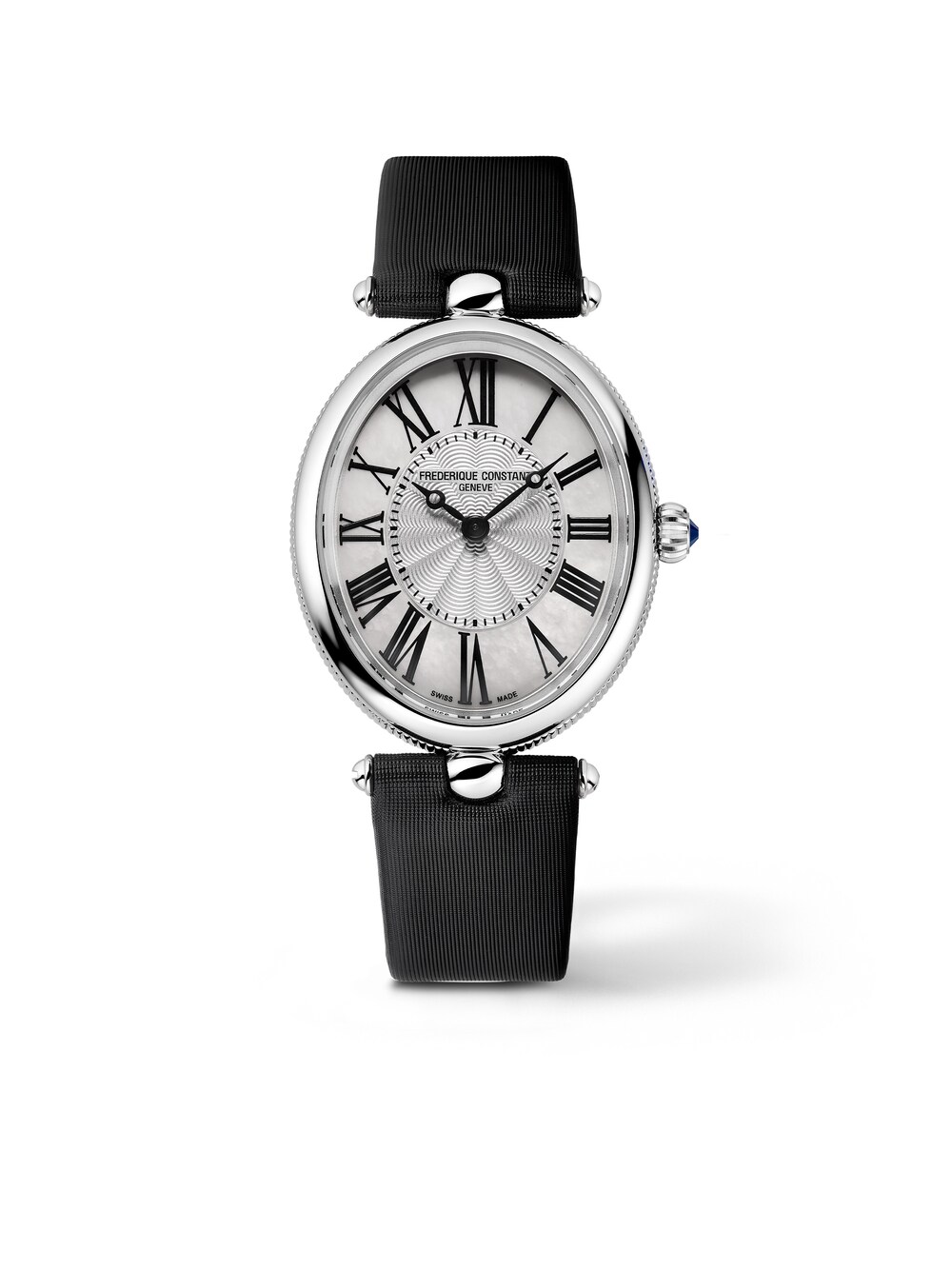 Classics Art Déco Oval 25 x 30 mm, Edelstahl mit schwarzem Satinarmband, Quarz-Kaliber FC-200 | Referenz-Nr. FC020028