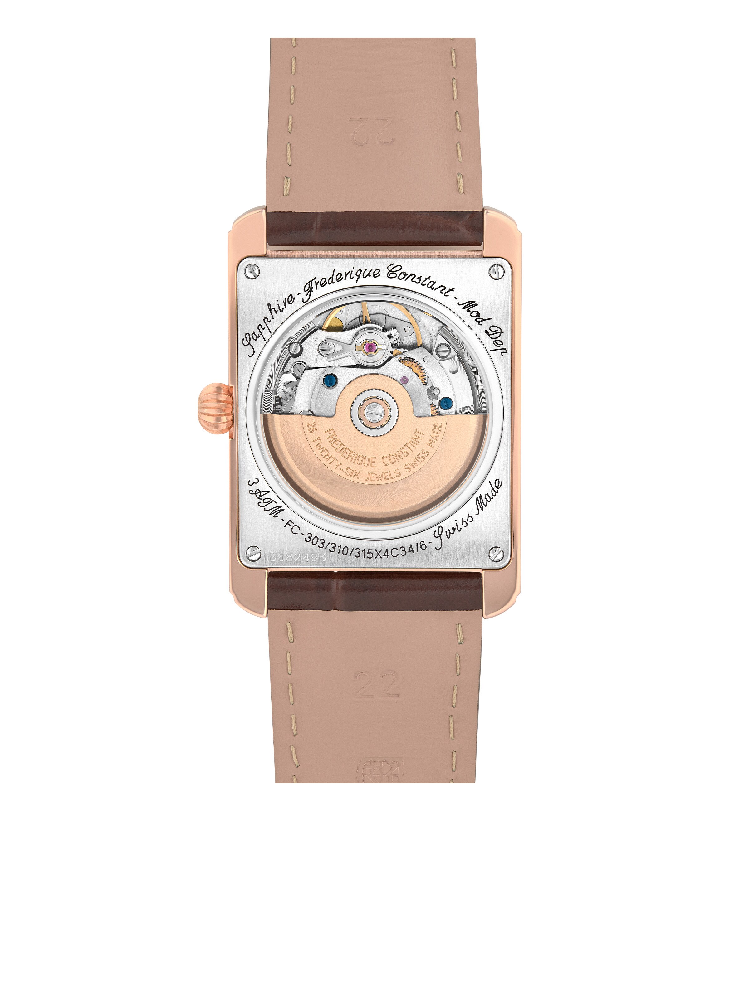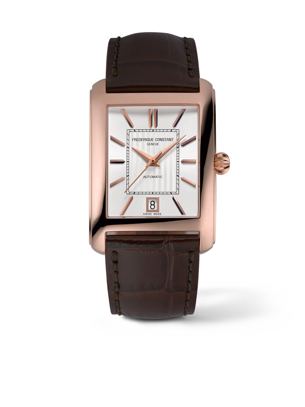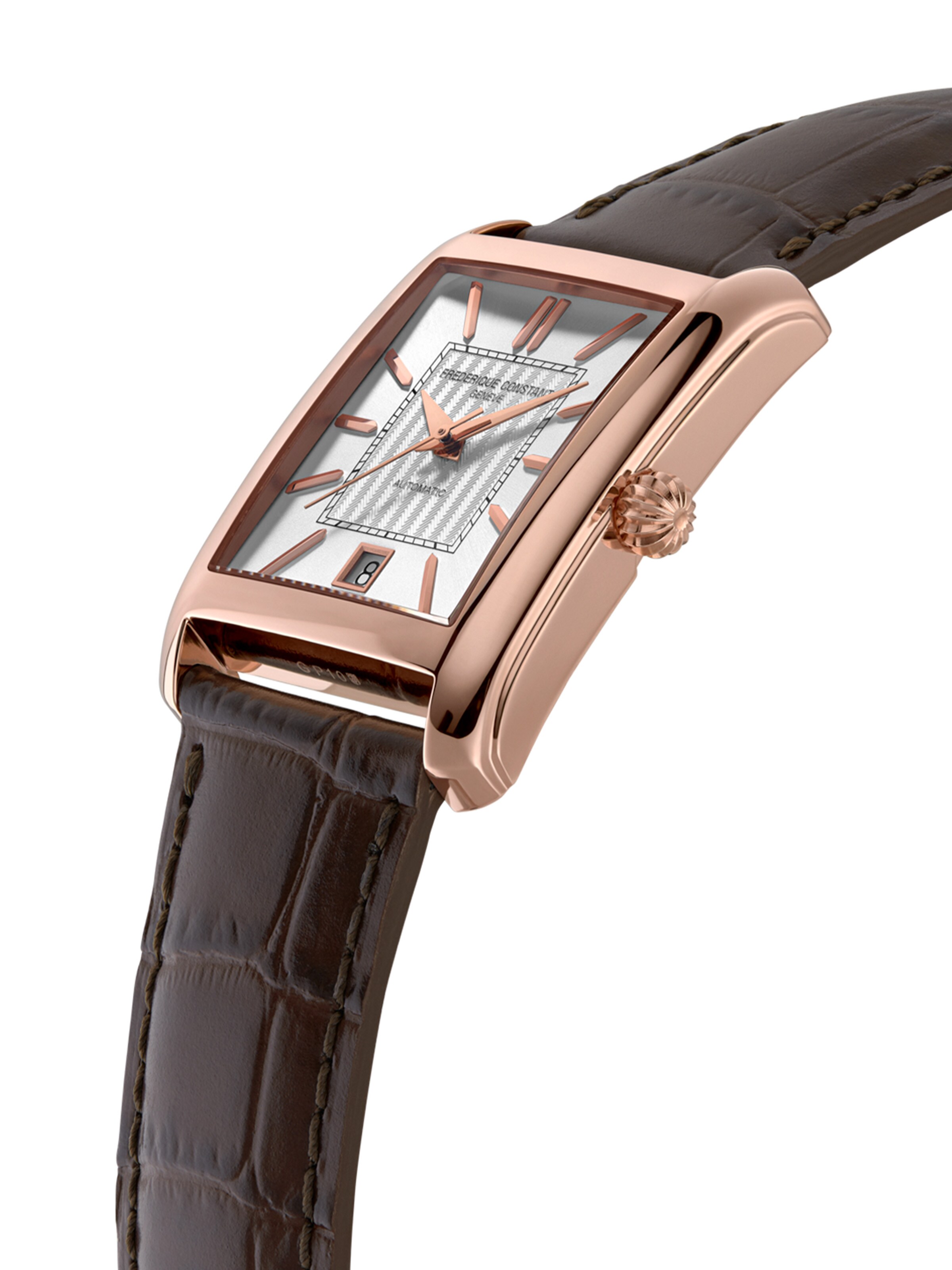 Classics Carrée Automatic 30 x 42,30 mm, Edelstahl 18k vergoldet mit braunem Kalbslederarmband, Automatik-Kaliber FC-303 mit Datumsanzeige | Referenz-Nr. FC010032