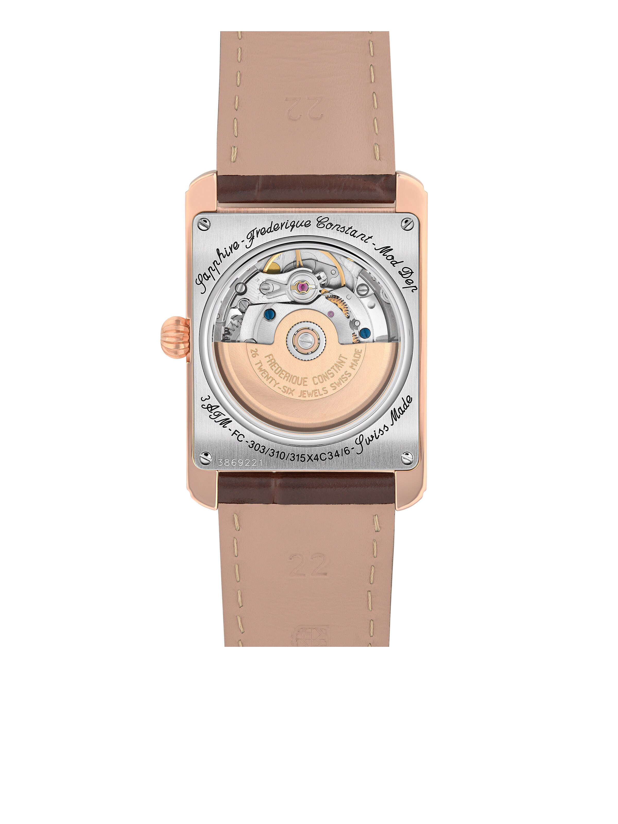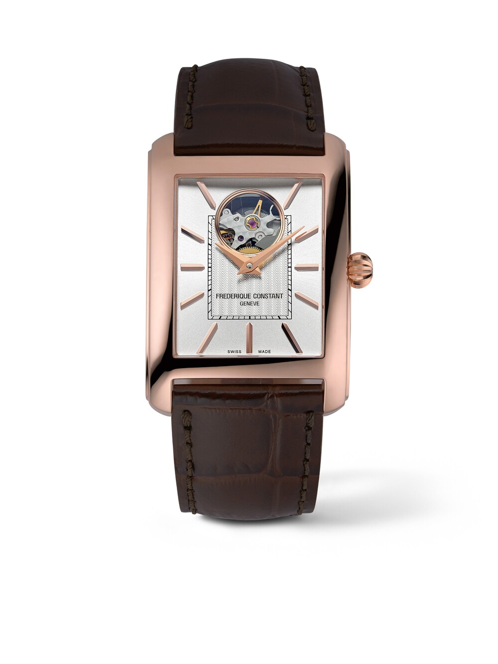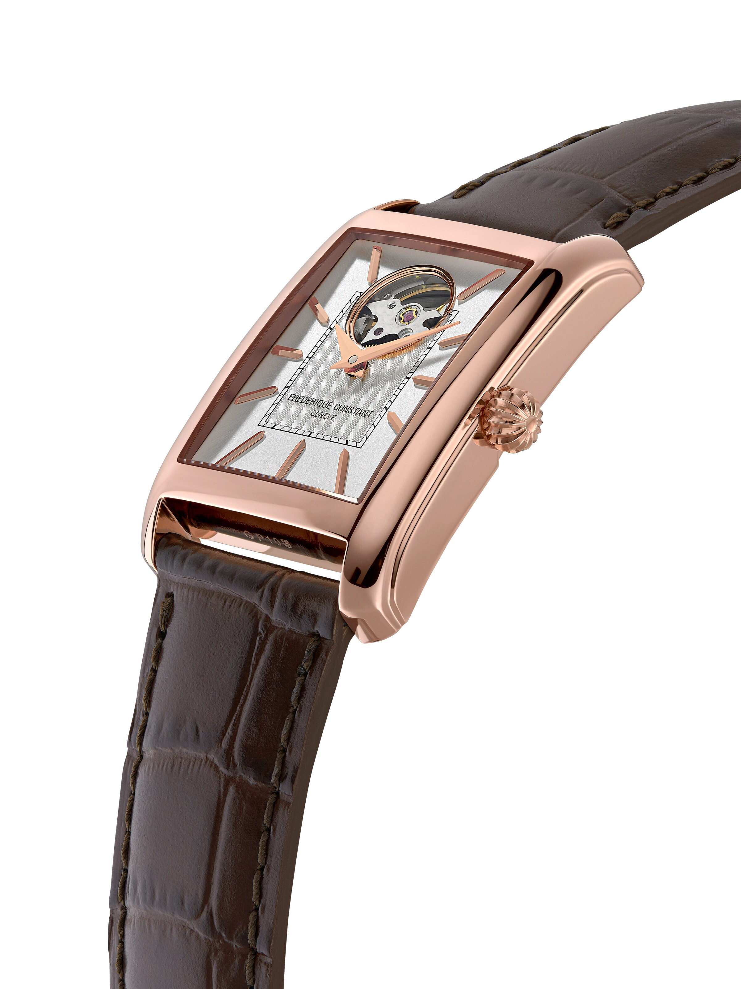 Classics Carrée Heart Beat Automatic 30 x 42,30 mm, Edelstahl 18k rosévergoldet mit braunem Kalbslederarmband, Automatik-Kaliber FC-311 | Referenz-Nr. FC010039
