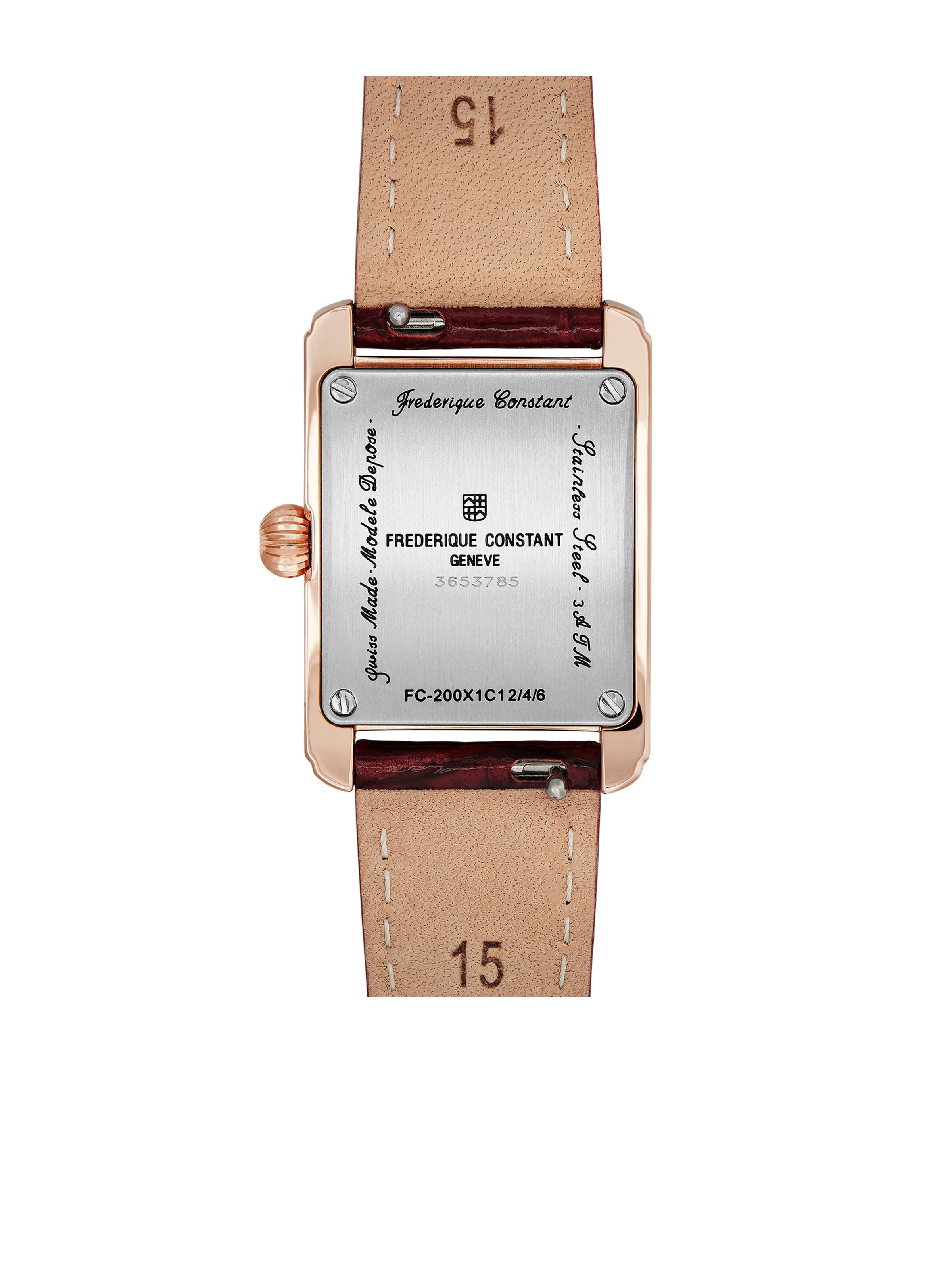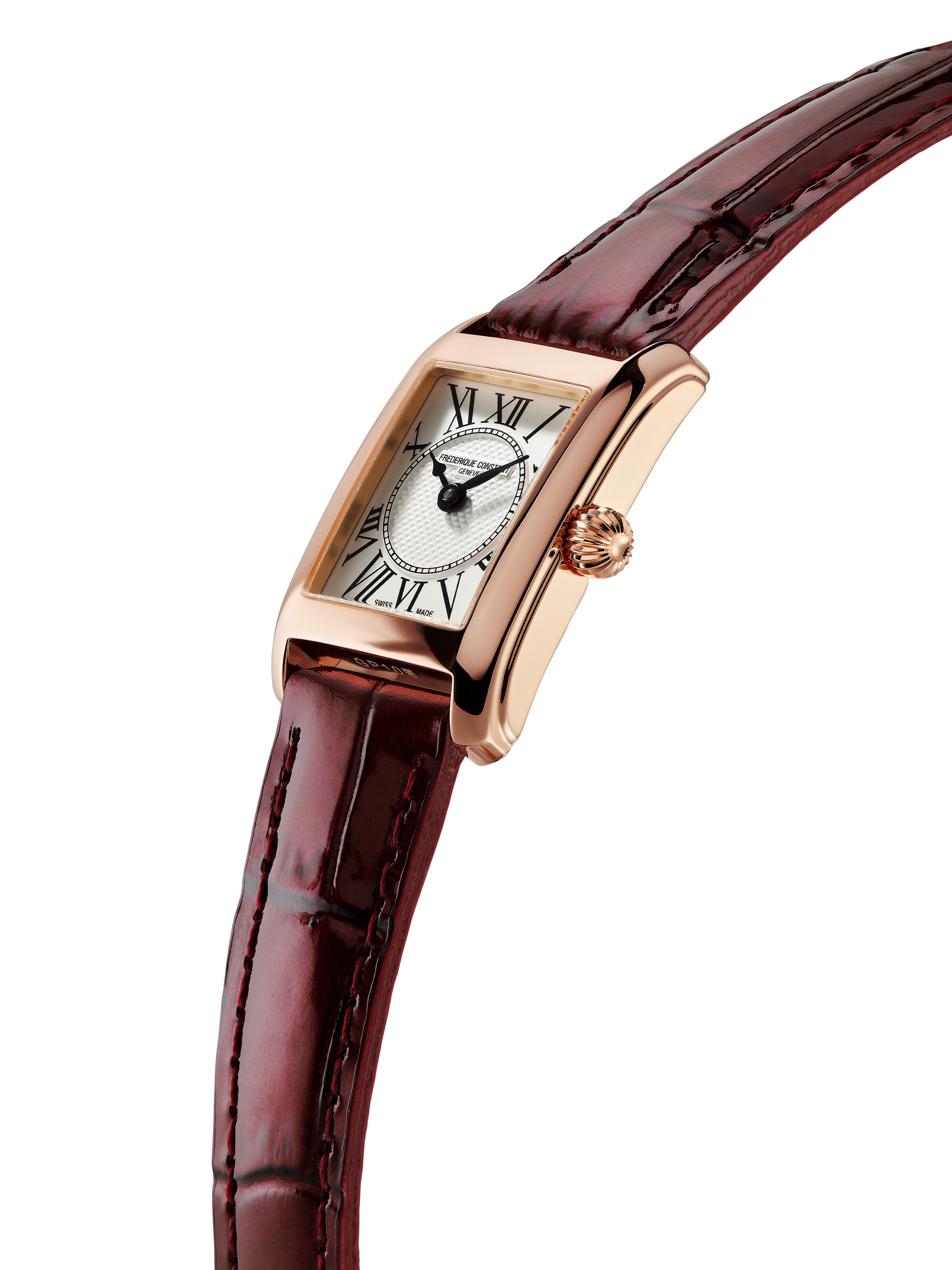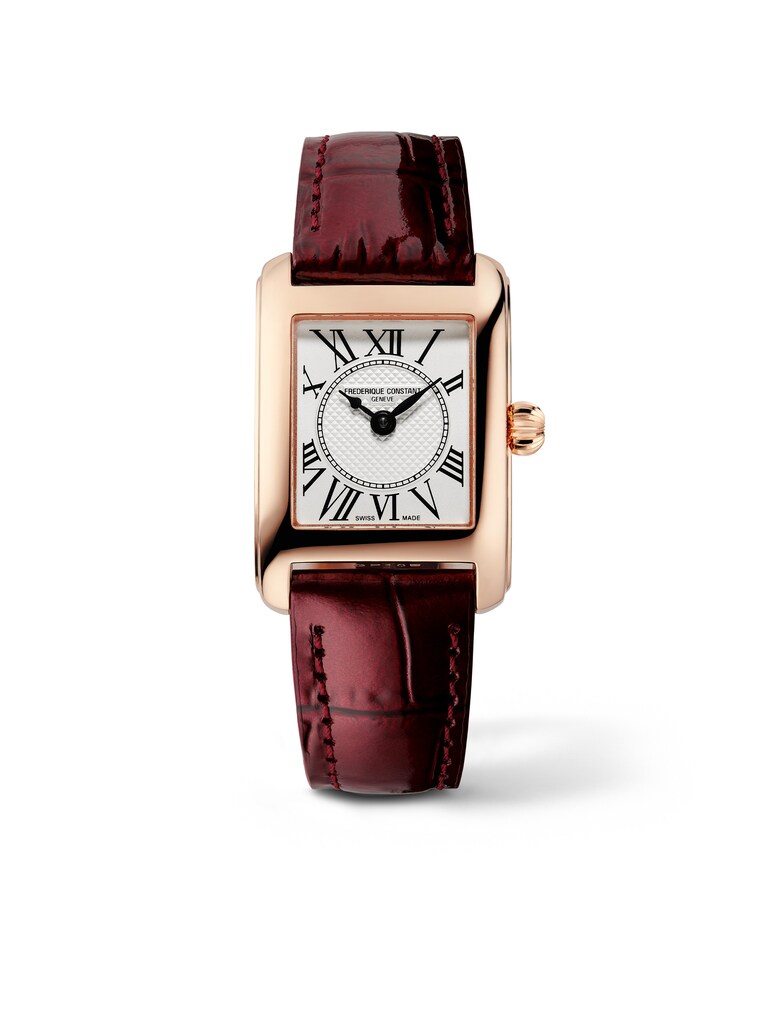 Classics Carrée Ladies 21 x 30 mm, Edelstahl vergoldet mit rotem Kalbslederarmband, Quarz-Kaliber FC-200 | Referenz-Nr. FC010024