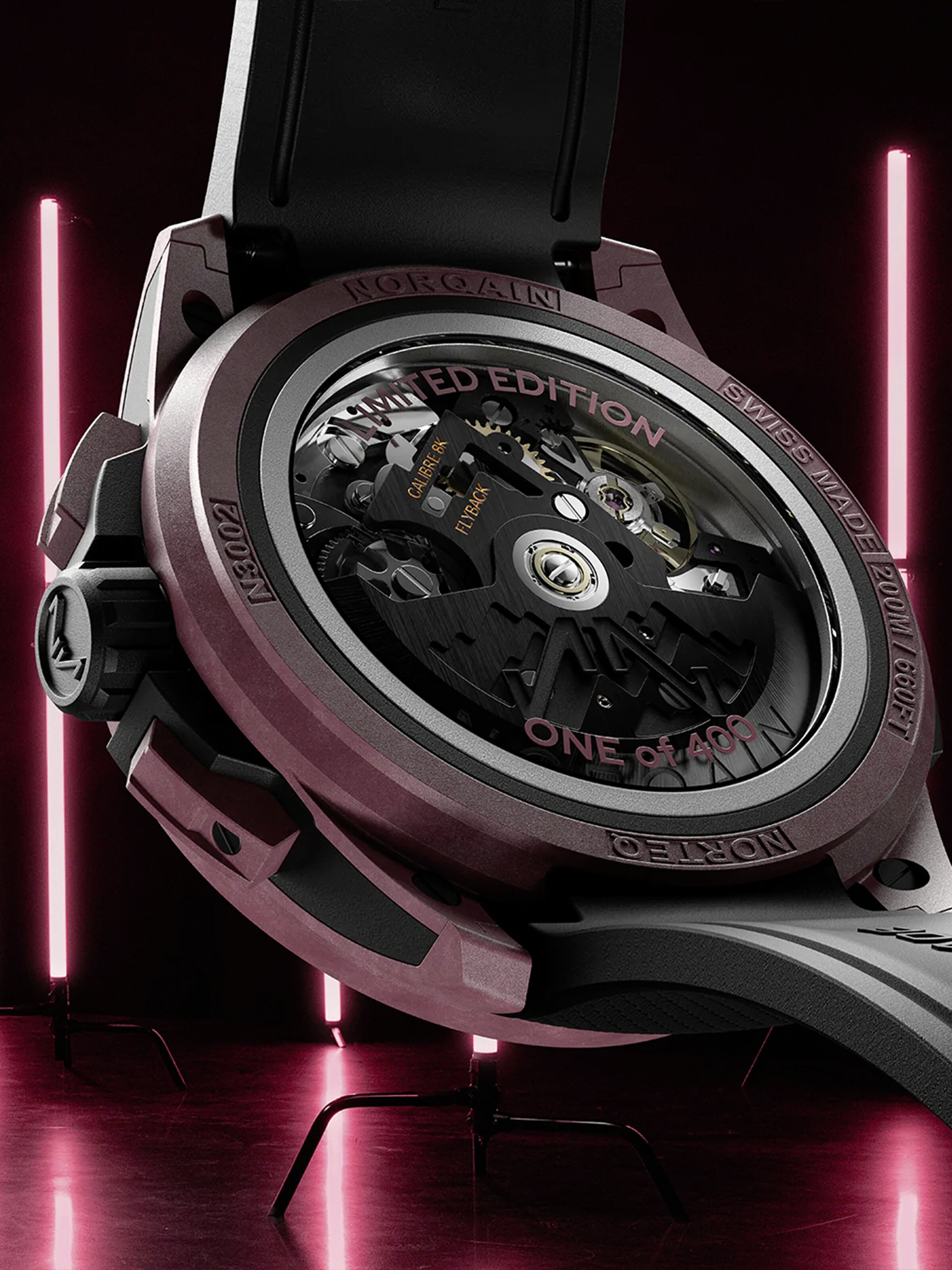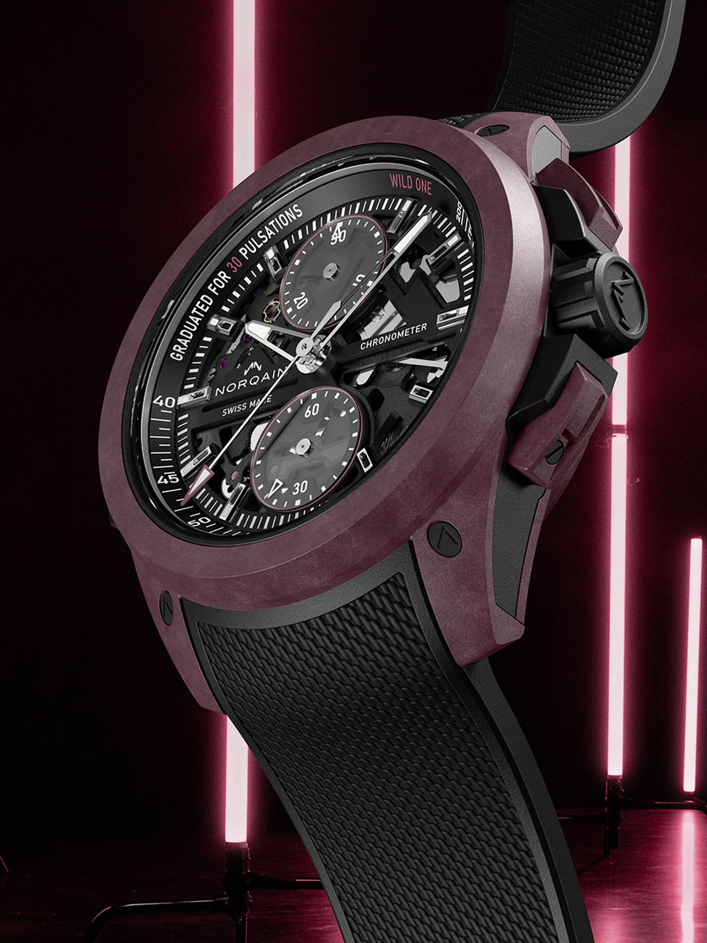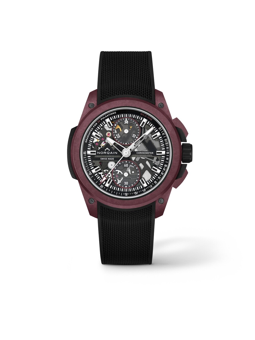 Independence Wild One Skeleton Chrono Limited Edition 42 mm, Norteq mit schwarzem Kautschukarmband, Automatik-Manufakturkaliber NORQAIN 8K mit Flyback-Chronographenfunktion, Limitiert auf 400 Stück | Referenz-Nr. NN200073