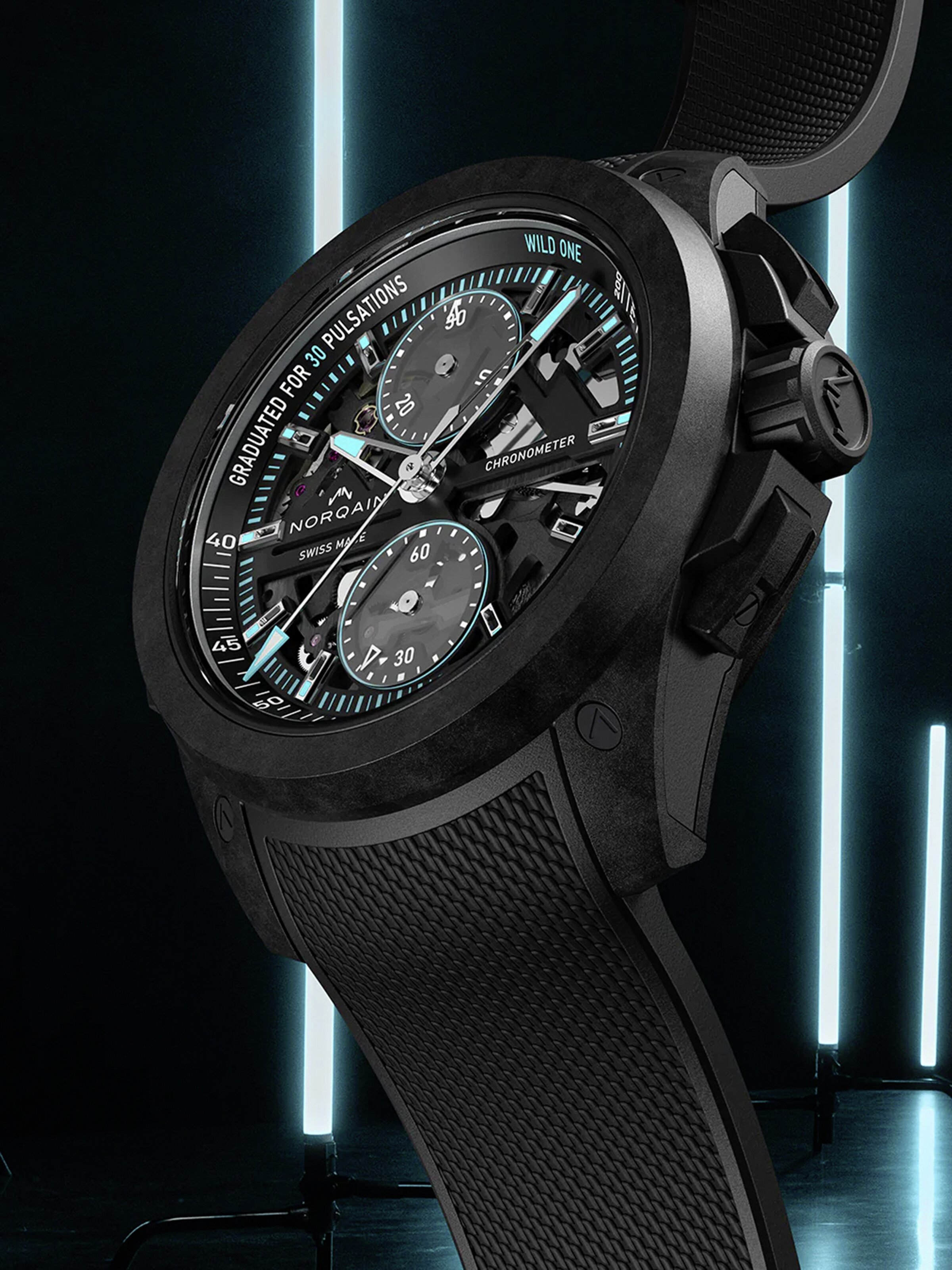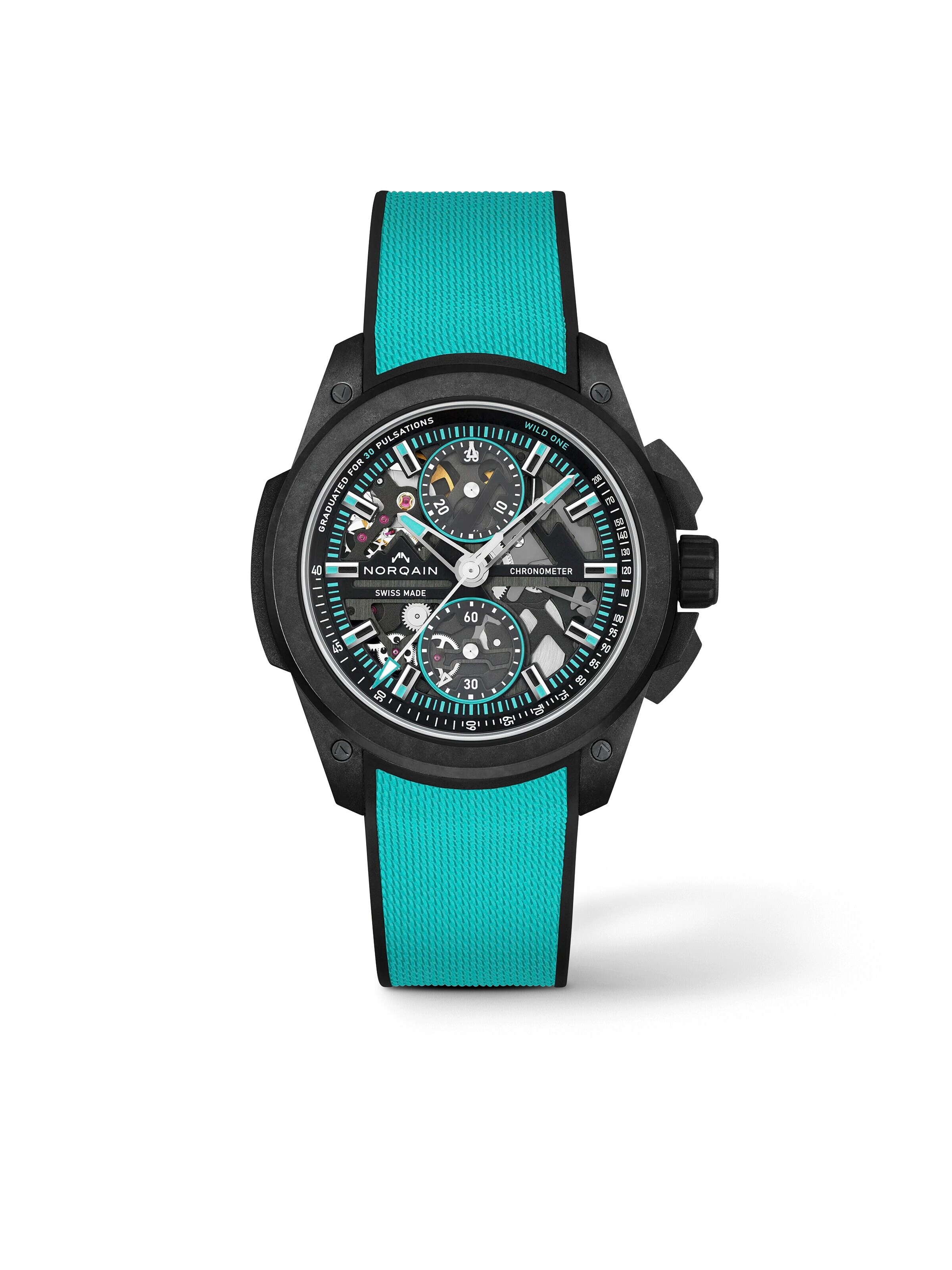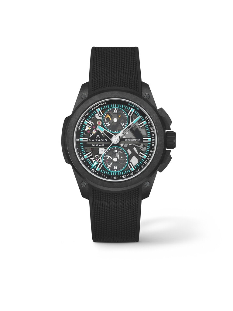 Independence Wild One Skeleton Chrono 42 mm, Norteq mit schwarzem Kautschukarmband, Automatik-Manufakturkaliber NORQAIN 8K mit Flyback-Chronographenfunktion | Referenz-Nr. NN200072