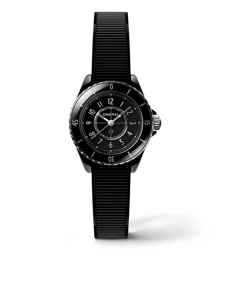 J12 28mm 28 mm, Keramik mit schwarzem Kautschukarmband, Quarzkaliber | Referenz-Nr. CL120088