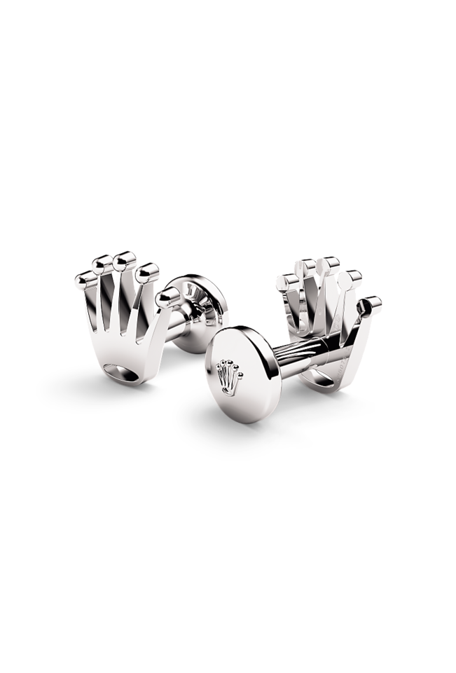 Rolex Manschettenknöpfe in 18 Karat Weißgold und in Form der unverkennbaren Rolex Krone.