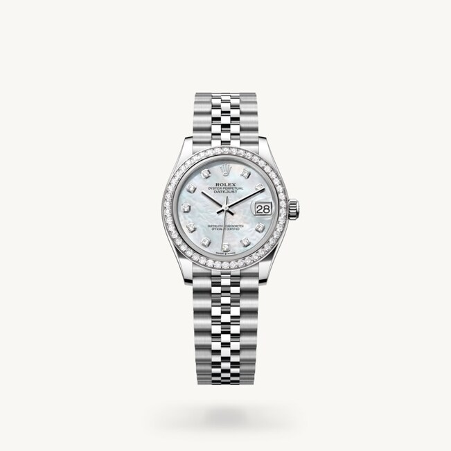 Dieses Zifferblatt verfügt über Diamanten, Fassung 18 Karat Gold. Perlmutt ist von Natur aus voller Geheimnisse und Überraschungen. Abhängig von seinem Ursprung kann es roséfarben, weiß, schwarz oder gelb sein und je nach dem, aus welchem Teil der Muschelschale es entnommen wurde, können Farbintensität und Farbstruktur variieren. Rolex färbt Perlmutt niemals künstlich ein. Arbeitsaufwand und Kunstfertigkeit heben lediglich seine natürliche Schönheit hervor, ohne dabei die ursprüngliche Farbnuancierung zu verändern. Alle Zifferblätter aus Perlmutt sind Unikate. Nie wird ein identisches Zifferblatt ein anderes Handgelenk zieren.