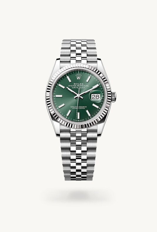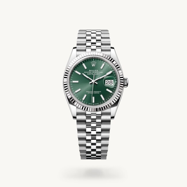 Die geriffelte Lünette von Rolex ist ein Markenzeichen. Ursprünglich hatte die Riffelung der Oyster Lünette einen praktischen Zweck: Sie diente zum Verschrauben mit dem Gehäuse, um die Wasserdichtheit der Armbanduhr zu gewährleisten. Die Riffelung entsprach deshalb der des Gehäusebodens, der ebenfalls mithilfe von Rolex Spezialwerkzeugen mit dem Gehäuse verschraubt wurde, um die Uhr wasserdicht zu machen. Mit der Zeit erhielt die Riffelung eine rein ästhetische Funktion und wurde zu einem prägenden Element des stilistischen Markenerbes von Rolex. Heute ist die geriffelte Lünette ein Distinktionsmerkmal, das bei dieser Datejust 36 in Gold gefertigt wird.