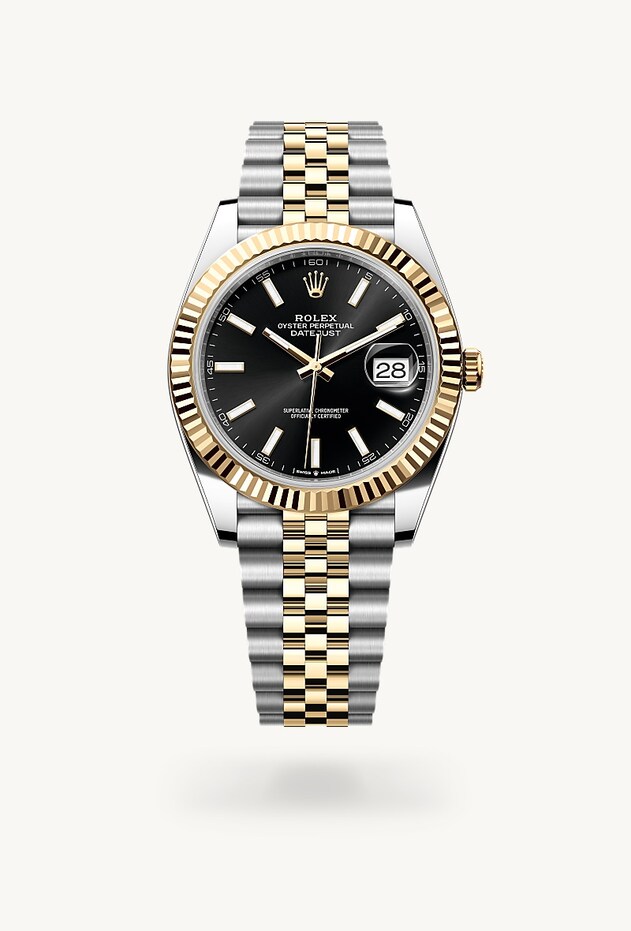 Die geriffelte Lünette von Rolex ist ein Markenzeichen. Ursprünglich hatte die Riffelung der Oyster Lünette einen praktischen Zweck: Sie diente zum Verschrauben mit dem Gehäuse, um die Wasserdichtheit der Armbanduhr zu gewährleisten. Die Riffelung entsprach deshalb der des Gehäusebodens, der ebenfalls mithilfe von Rolex Spezialwerkzeugen mit dem Gehäuse verschraubt wurde, um die Uhr wasserdicht zu machen. Mit der Zeit erhielt die Riffelung eine rein ästhetische Funktion und wurde zu einem prägenden Element des stilistischen Markenerbes von Rolex. Heute ist die geriffelte Lünette ein Distinktionsmerkmal, das bei dieser Datejust 41 in Gold gefertigt wird.