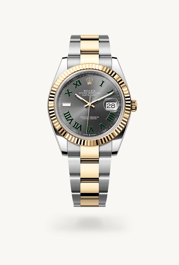 Die geriffelte Lünette von Rolex ist ein Markenzeichen. Ursprünglich hatte die Riffelung der Oyster Lünette einen praktischen Zweck: Sie diente zum Verschrauben mit dem Gehäuse, um die Wasserdichtheit der Armbanduhr zu gewährleisten. Die Riffelung entsprach deshalb der des Gehäusebodens, der ebenfalls mithilfe von Rolex Spezialwerkzeugen mit dem Gehäuse verschraubt wurde, um die Uhr wasserdicht zu machen. Mit der Zeit erhielt die Riffelung eine rein ästhetische Funktion und wurde zu einem prägenden Element des stilistischen Markenerbes von Rolex. Heute ist die geriffelte Lünette ein Distinktionsmerkmal, das bei dieser Datejust 41 in Gold gefertigt wird.