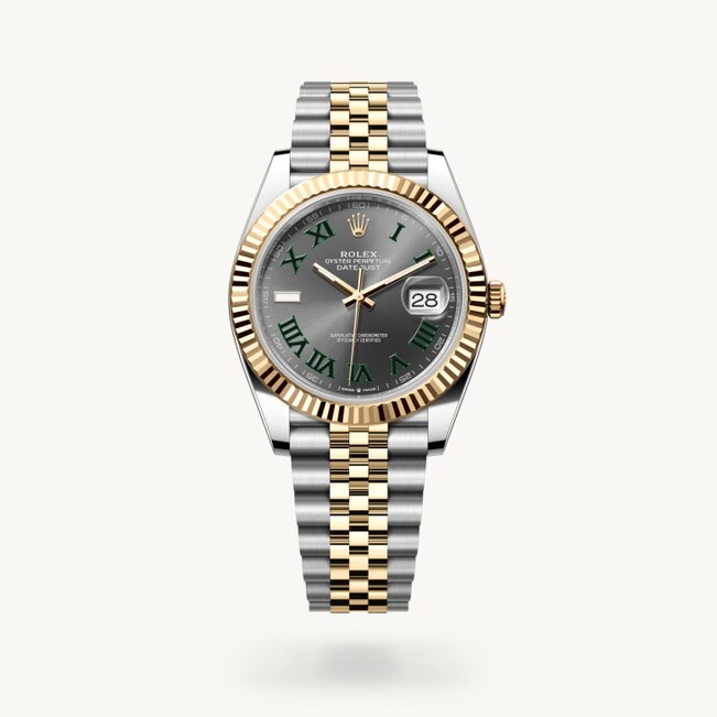 Die geriffelte Lünette von Rolex ist ein Markenzeichen. Ursprünglich hatte die Riffelung der Oyster Lünette einen praktischen Zweck: Sie diente zum Verschrauben mit dem Gehäuse, um die Wasserdichtheit der Armbanduhr zu gewährleisten. Die Riffelung entsprach deshalb der des Gehäusebodens, der ebenfalls mithilfe von Rolex Spezialwerkzeugen mit dem Gehäuse verschraubt wurde, um die Uhr wasserdicht zu machen. Mit der Zeit erhielt die Riffelung eine rein ästhetische Funktion und wurde zu einem prägenden Element des stilistischen Markenerbes von Rolex. Heute ist die geriffelte Lünette ein Distinktionsmerkmal, das bei dieser Datejust 41 in Gold gefertigt wird.