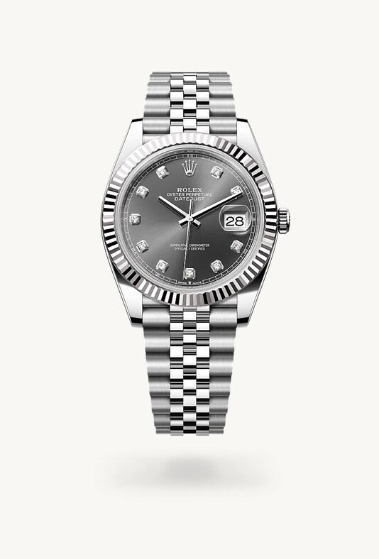 Die geriffelte Lünette von Rolex ist ein Markenzeichen. Ursprünglich hatte die Riffelung der Oyster Lünette einen praktischen Zweck: Sie diente zum Verschrauben mit dem Gehäuse, um die Wasserdichtheit der Armbanduhr zu gewährleisten. Die Riffelung entsprach deshalb der des Gehäusebodens, der ebenfalls mithilfe von Rolex Spezialwerkzeugen mit dem Gehäuse verschraubt wurde, um die Uhr wasserdicht zu machen. Mit der Zeit erhielt die Riffelung eine rein ästhetische Funktion und wurde zu einem prägenden Element des stilistischen Markenerbes von Rolex. Heute ist die geriffelte Lünette ein Distinktionsmerkmal, das bei dieser Datejust 41 in Gold gefertigt wird.