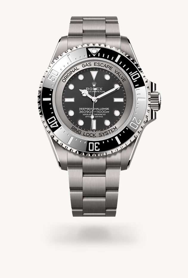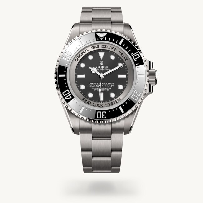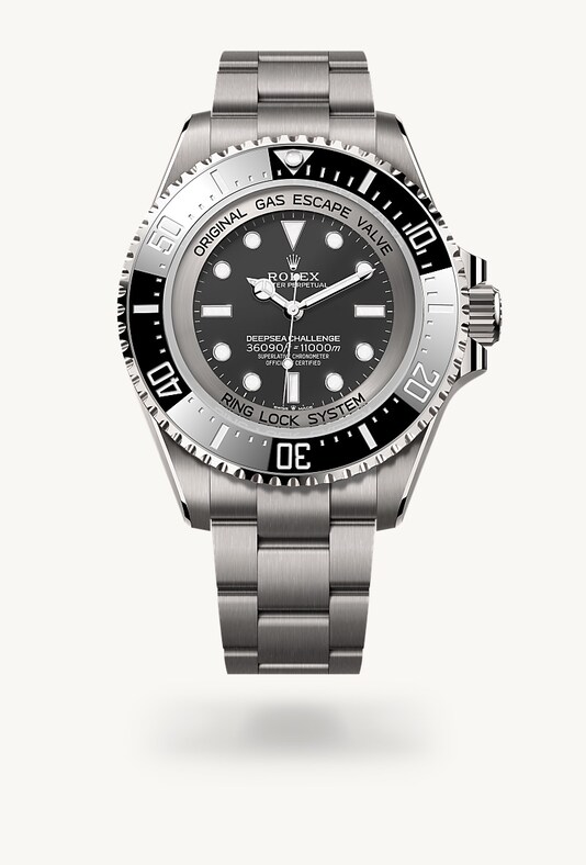 Titan RLX, eine von Rolex ausgesuchte Grade-5-Titanlegierung, zeichnet sich durch geringes Gewicht sowie durch Verformungs- und Korrosionsbeständigkeit aus. Die experimentelle Armbanduhr in Edelstahl 904L, die mit James Cameron in den Marianengraben hinabgetaucht war, konnte dem Druck in der Tiefsee widerstehen, war aber aufgrund ihres Gewichts nicht bequem zu tragen. Durch den Einsatz von Titan RLX für die Fertigung von Gehäuse und Armband der Deepsea Challenge wurde es möglich, das Gewicht der Armbanduhr zu reduzieren. Sie wiegt nun 30 Prozent weniger als die experimentelle Armbanduhr von James Cameron. Die Uhr präsentiert sich zudem mit einer besonders markanten Satinierung auf dem Armband und dem gesamten Gehäuse – mit Ausnahme des Kronenschutzes. Um die geschwungenen Konturen der Hornbügel zu betonen, wurden die Oberkanten angefast und dann poliert.