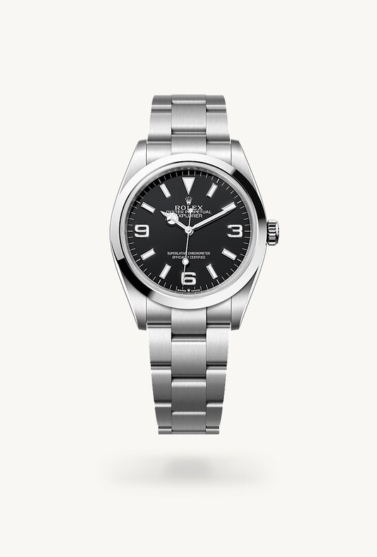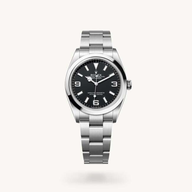 Das Zifferblatt verleiht einer Rolex Armbanduhr ein Gesicht sowie eine eigene Identität und sorgt überdies für perfekte Ablesbarkeit. Die charakteristischen Ziffern 3, 6 und 9 des Explorer Modells sind nun – ebenso wie seine Indizes und die Zeiger – mit einer blauen, sehr lange nachleuchtenden Leuchtmasse beschichtet. Wie jedes Rolex Zifferblatt wird auch das der Explorer 36 im eigenen Hause kreiert und fast vollständig in Handarbeit hergestellt, um seine Perfektion zu garantieren.