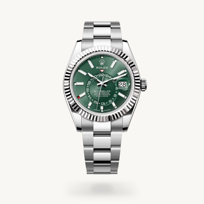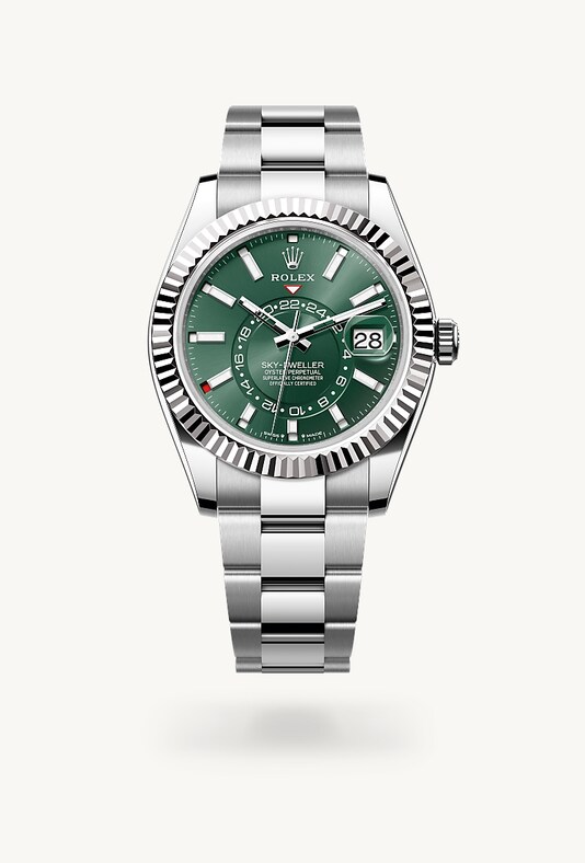 Die geriffelte Lünette von Rolex ist ein Markenzeichen. Ursprünglich hatte die Riffelung der Oyster Lünette einen praktischen Zweck: Sie diente zum Verschrauben mit dem Gehäuse, um die Wasserdichtheit der Armbanduhr zu gewährleisten. Die Riffelung entsprach deshalb der des Gehäusebodens, der ebenfalls mithilfe von Rolex Spezialwerkzeugen mit dem Gehäuse verschraubt wurde, um die Uhr wasserdicht zu machen. Mit der Zeit erhielt die Riffelung eine rein ästhetische Funktion und wurde zu einem prägenden Element des stilistischen Markenerbes von Rolex. Heute ist die geriffelte Lünette ein Markenzeichen, das ausschließlich in Gold gefertigt wird. Die Sky‑Dweller verfügt über das Ring-Command-System – ein Mechanismus, der es dem Träger der Armbanduhr durch das Zusammenspiel von drehbarer Lünette, Aufzugskrone und Uhrwerk ermöglicht, die Funktionen der Armbanduhr nacheinander auszuwählen und einfach, schnell und sicher einzustellen.