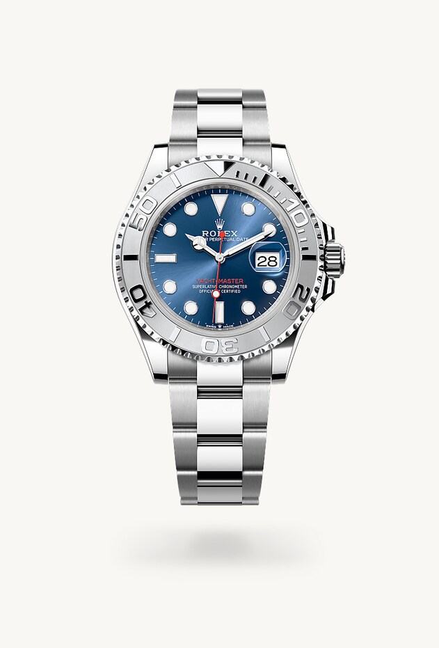 Viele Uhren von Rolex sind in der mittlerweile legendären Kombination aus Gelb-, Weiß- oder Everose-Gold mit Edelstahl erhältlich, die als Rolesor bekannt ist; Rolesium ist jedoch eine Kreation, die allein der Yacht‑Master vorbehalten ist. Während Gehäuse und Armband aus dem widerstandsfähigen Edelstahl Oystersteel gefertigt sind, besteht die Lünette der Rolesium-Versionen aus Platin und verleiht ihnen durch ihre silbrig-weiße Farbe und den lebhaften Glanz eine unverkennbar luxuriöse Anmutung.
