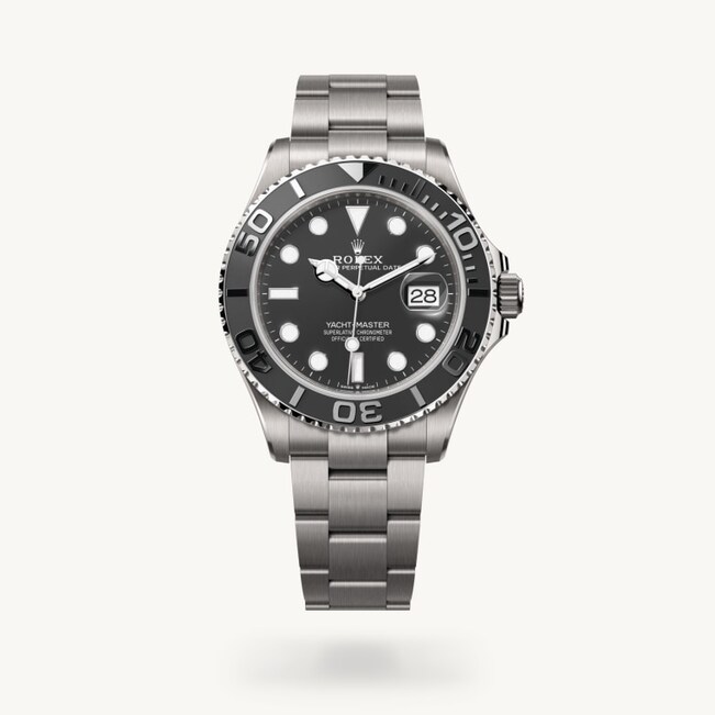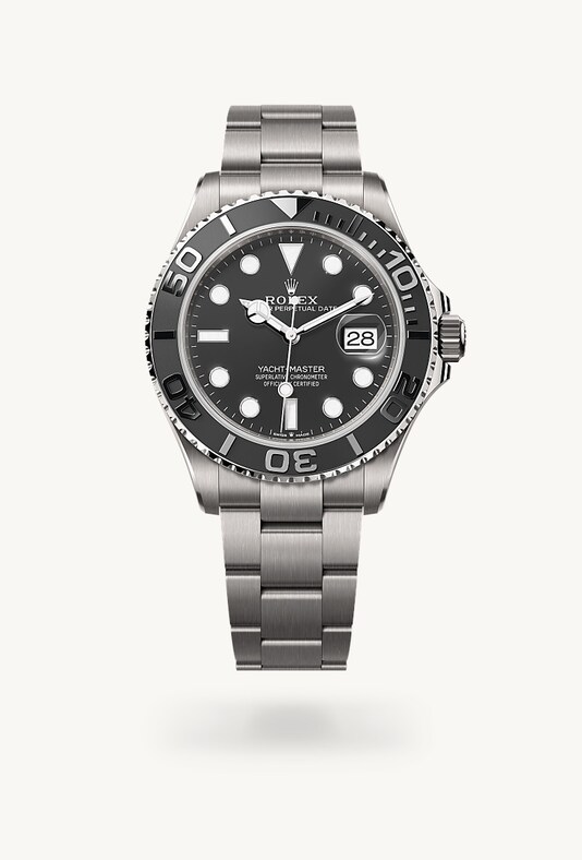 Die in beide Richtungen drehbare Lünette mit 60-Minuten-Graduierung der Yacht‑Master präsentiert sich vollständig in Edelmetallen oder mit einer Cerachrom-Zahlenscheibe aus Hightech-Keramik. Die polierten Ziffern und Graduierungen im Relief heben sich perfekt von dem sandgestrahlten matten Fond ab. Mit ihrer Funktionalität, die beispielsweise das Ablesen der Fahrzeit zwischen zwei Tonnen ermöglicht, trägt diese Lünette wesentlich zur Einzigartigkeit dieses Modells bei.