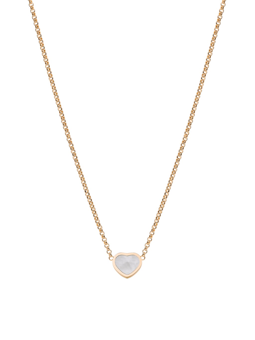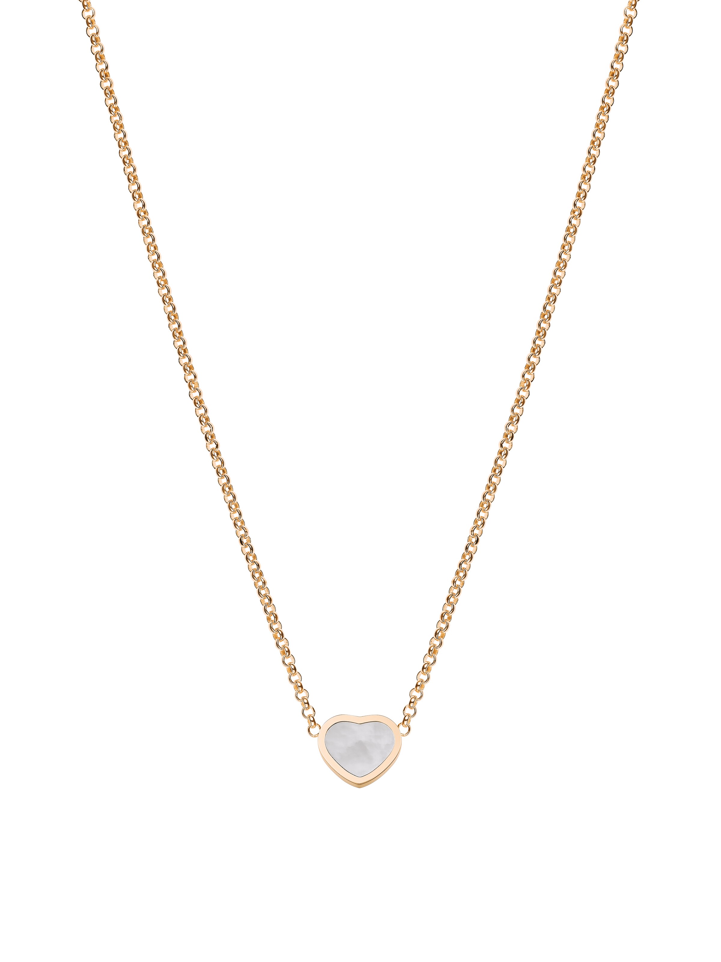 Einzigartige Kreationen, die ein Motiv von besonderer Bedeutung für Chopard feiern: das Herz. Als zeitloses Symbol für Liebe, Großzügigkeit und Lebenskraft ziert es den Anhänger My Happy Hearts. Im Zentrum der grazilen Kette aus 18k Roségold steht das schimmernde Perlmutt-Herz, dessen Verschluss ein weiteres kleines Herz mit der Chopard-Gravur schmückt. Durch Zwischenösen kann die Länge von 41 Zentimetern verkürzt werden. Eine liebevolle Geschenkidee für die Menschen, die Ihnen am Herz liegen.