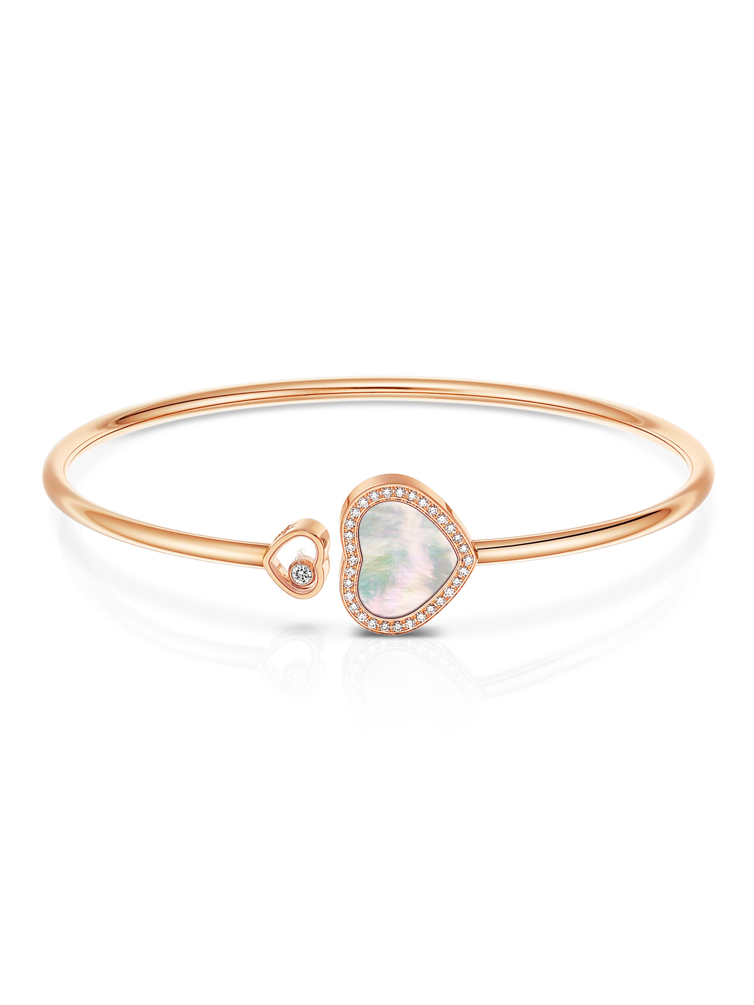 Armreif Happy Hearts 18k Roségold, 33 Brillanten 0,19 ct, 1 Perlmutt, 17 cm Länge | Referenz-Nr. 40AR0416