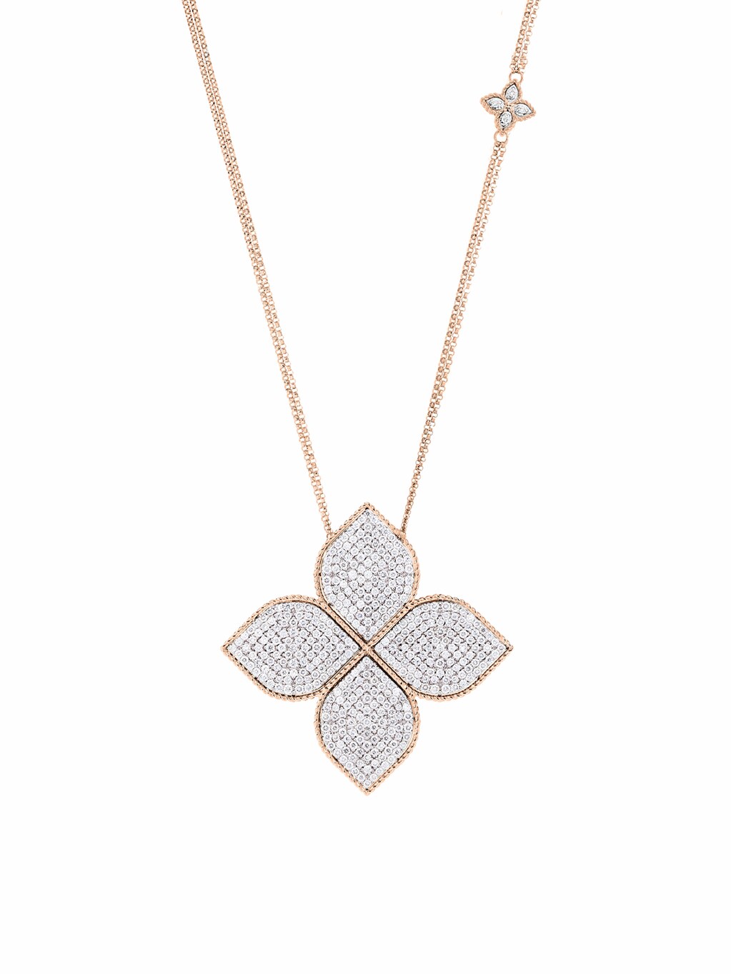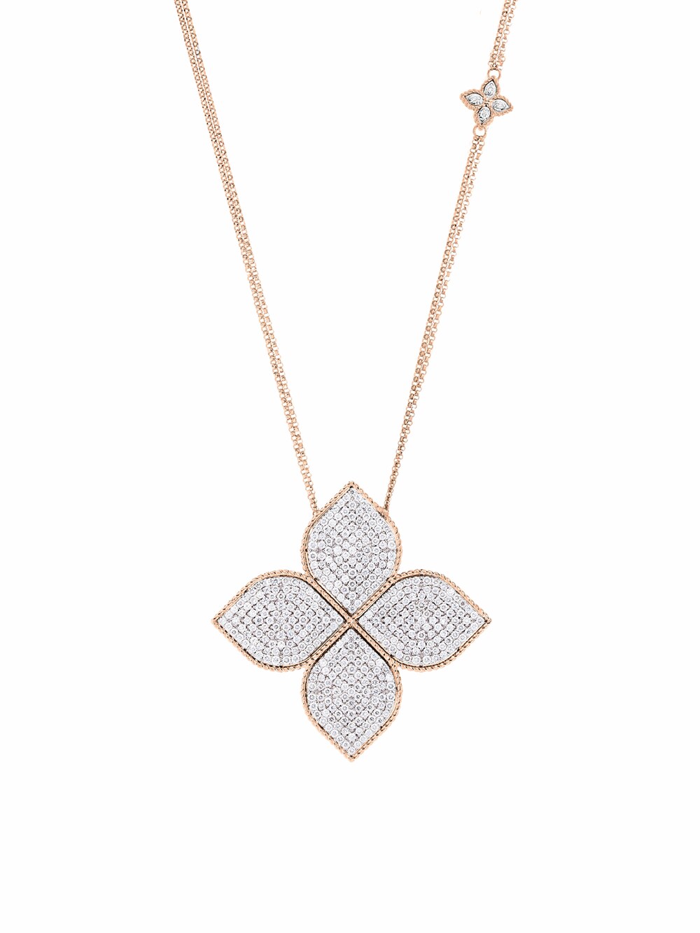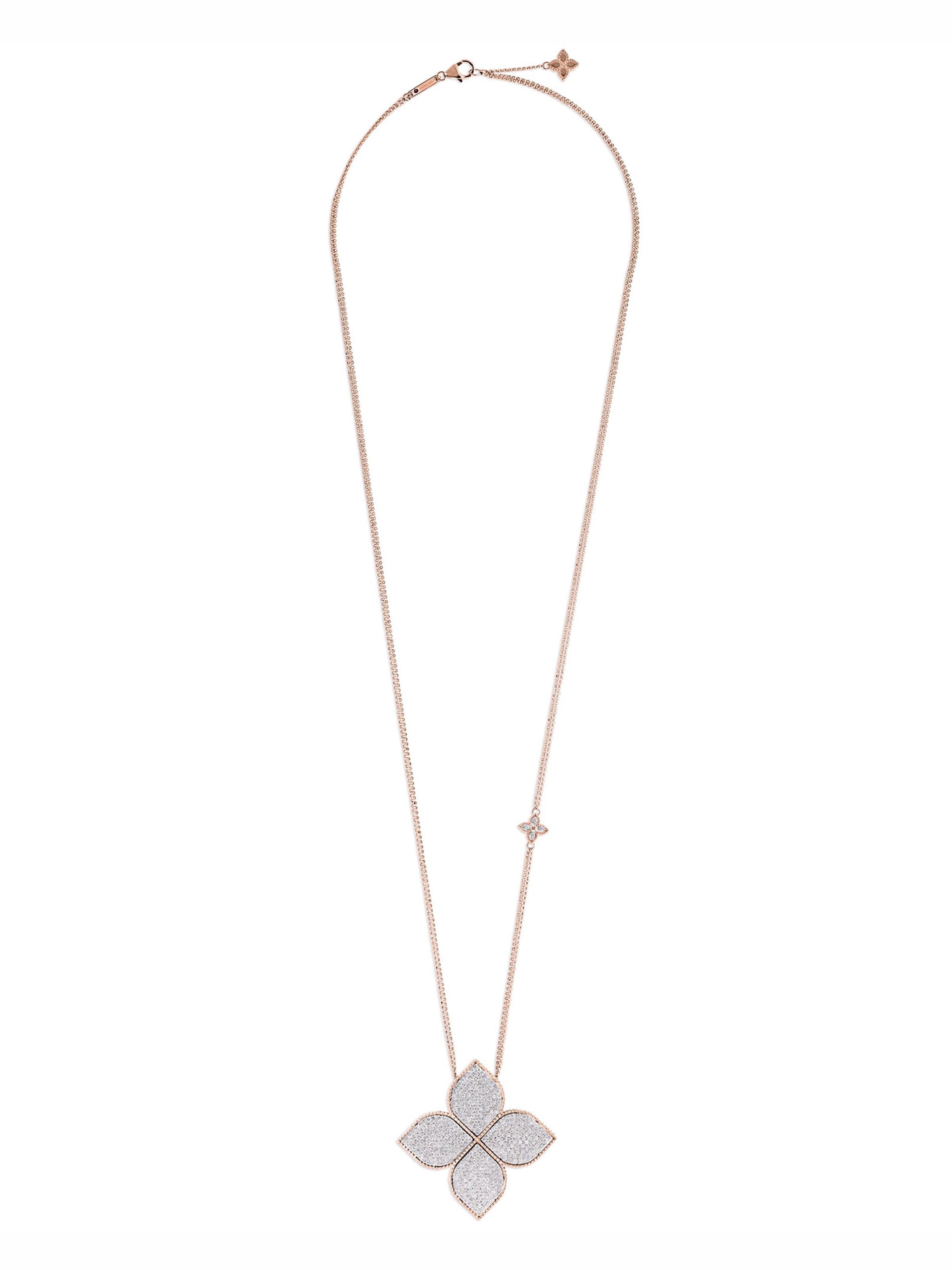 Anhänger Princess Flower 18k Rosé-/Weißgold, 400 Brillanten 4,093 ct, 1 Rubin 0,017 ct, 77 cm Länge | Referenz-Nr. 40AH1636