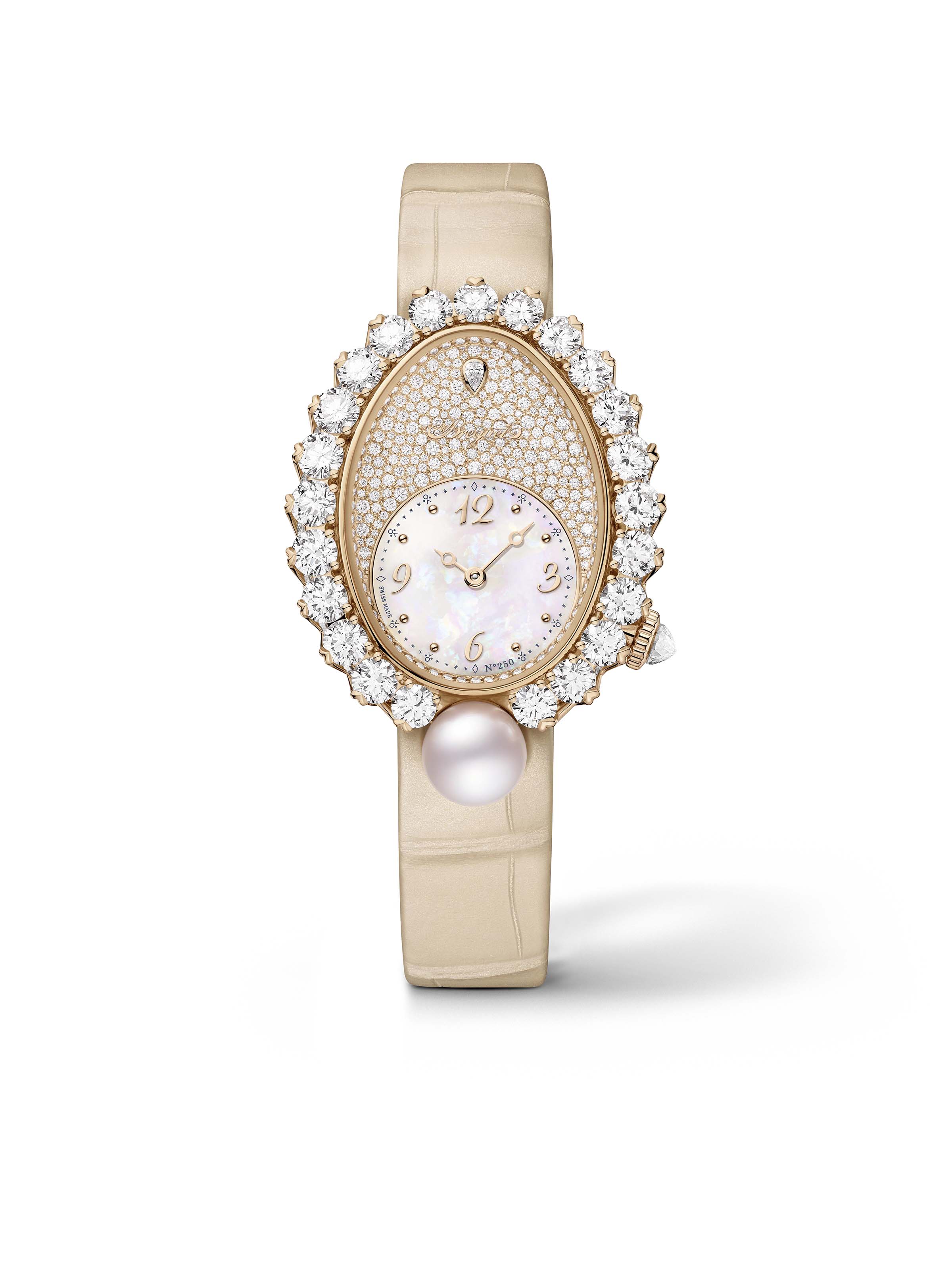 Reine de Naples "Perles Imperial Lederband" - Sonderedition 250. Jubiläum 32,8 x 26,4 mm, 18k Breguet-Gold mit beigem Alligatorlederarmband, Automatik-Manufakturkaliber 586/1 | Referenz-Nr. BG100112