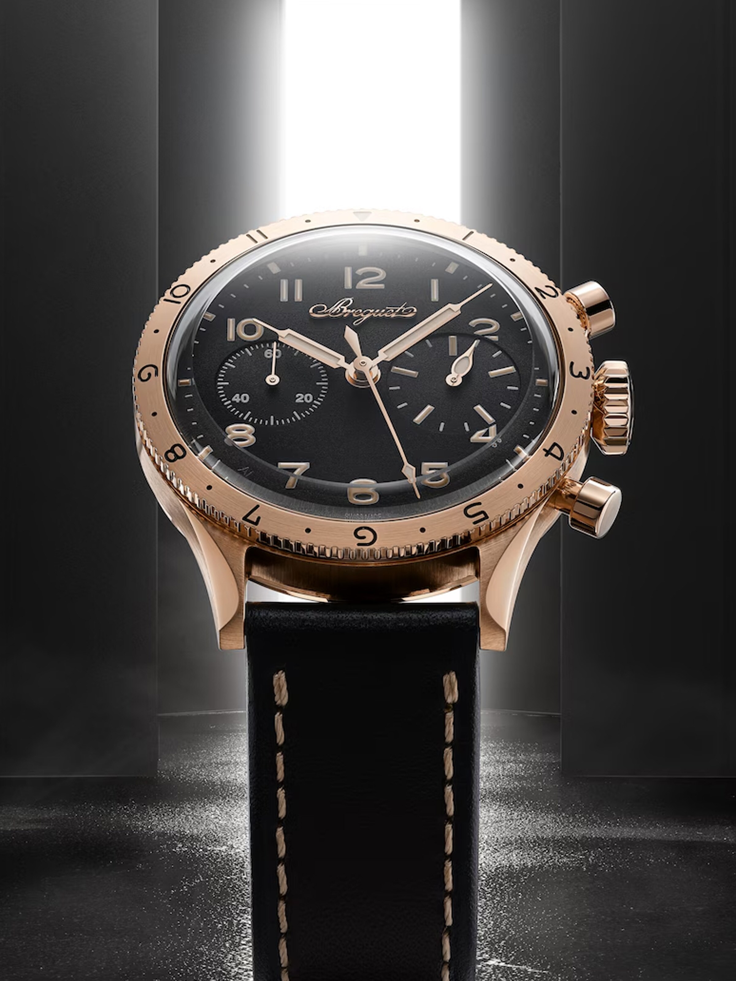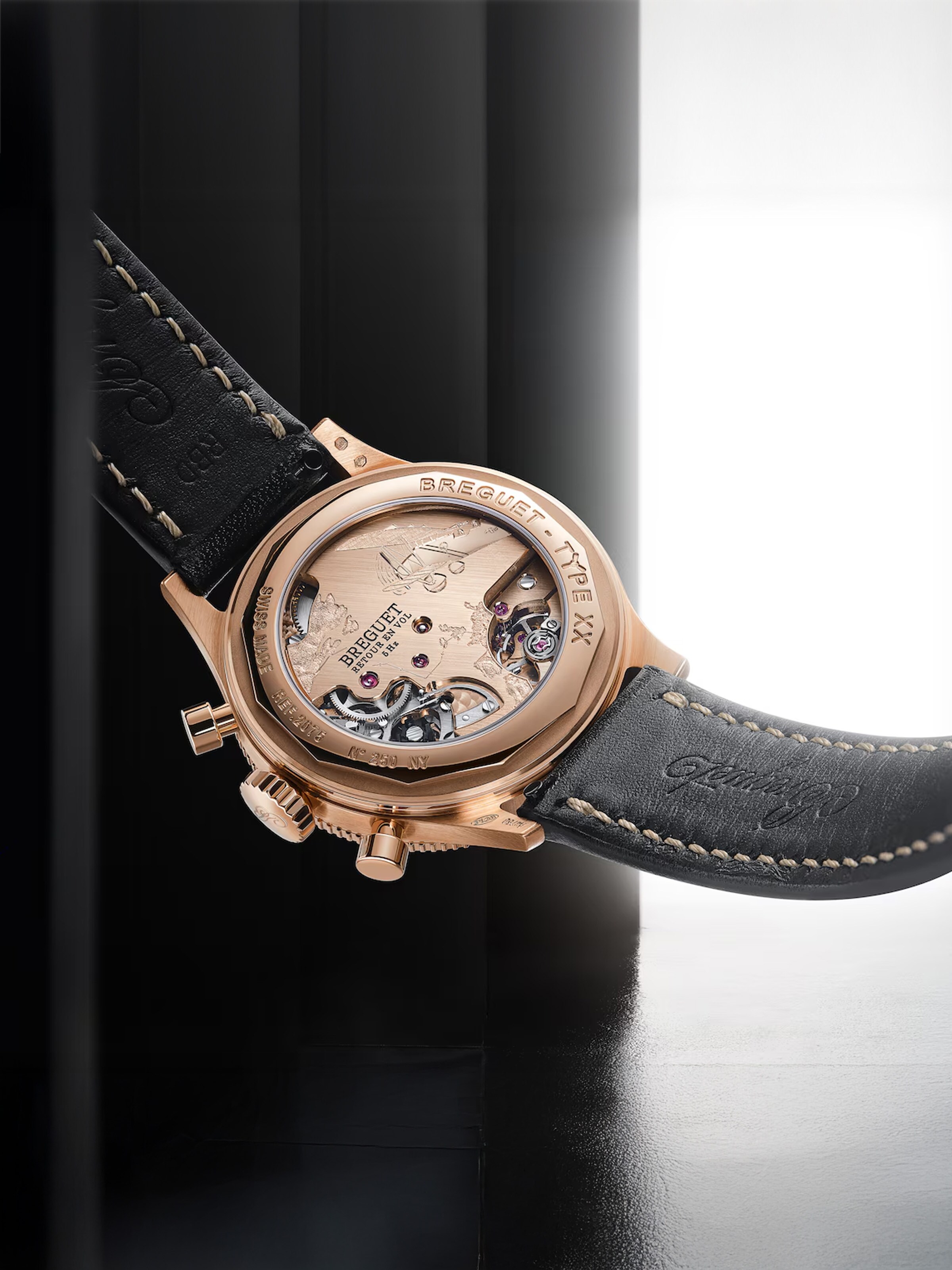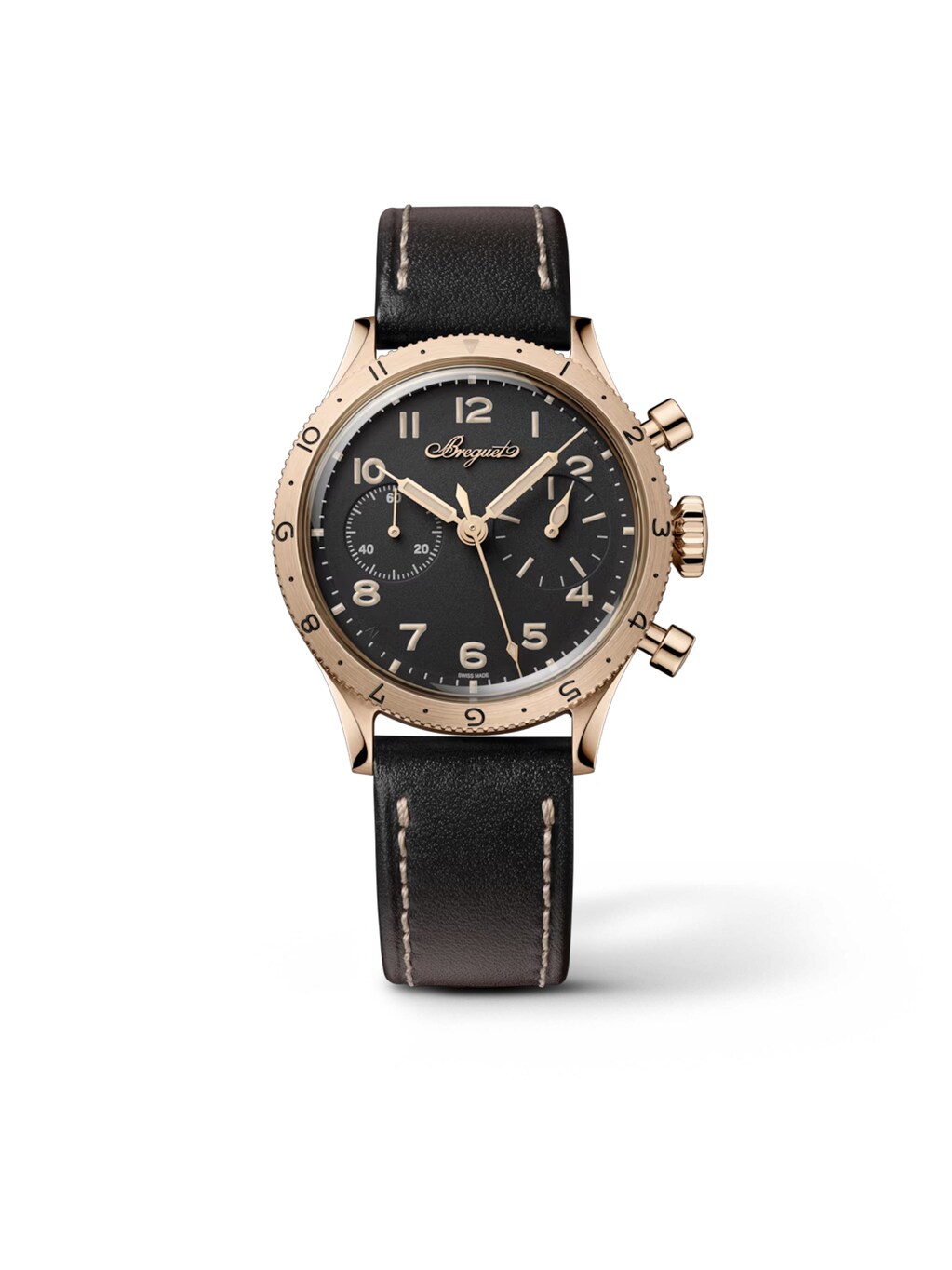 Type XX Chronographe 2075 38,3 mm, 18k Breguet-Gold mit schwarzem Kalbslederarmband, Handaufzug-Manufakturkaliber 7279 mit Chronographenfunktion | Referenz-Nr. BG000031