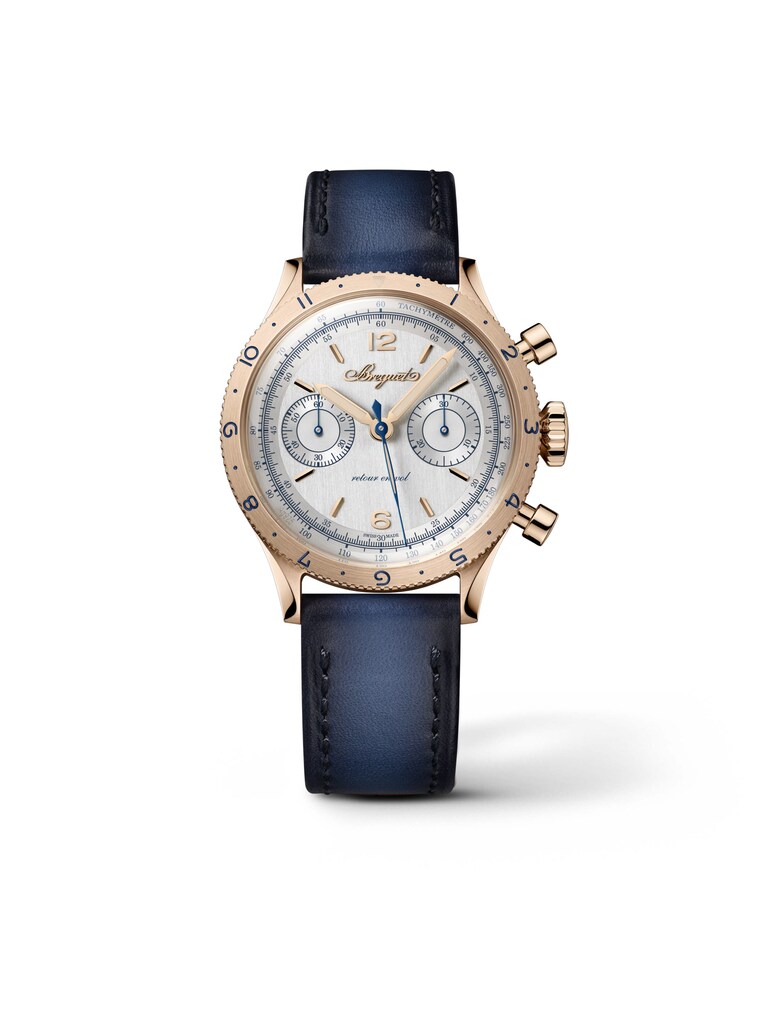 Type XX Chronographe 2075 38,3 mm, 18k Breguet-Gold mit blauem Kalbslederarmband, Handaufzug-Manufakturkaliber 7279 mit Chronographenfunktion und Limitiert auf 250 Stück | Referenz-Nr. BG000032