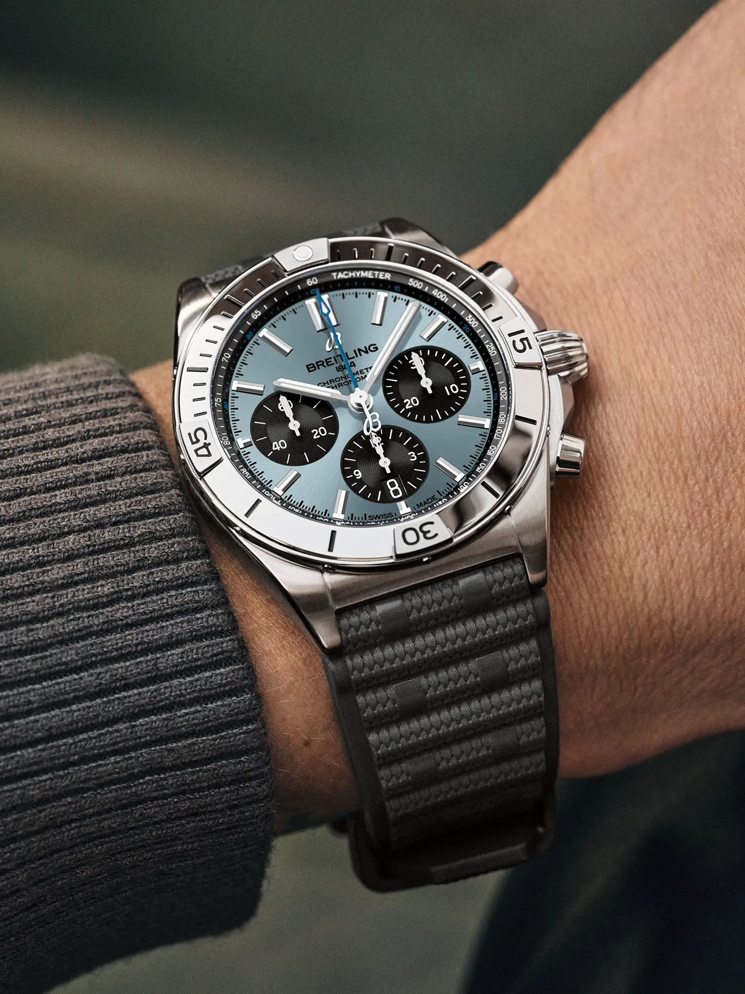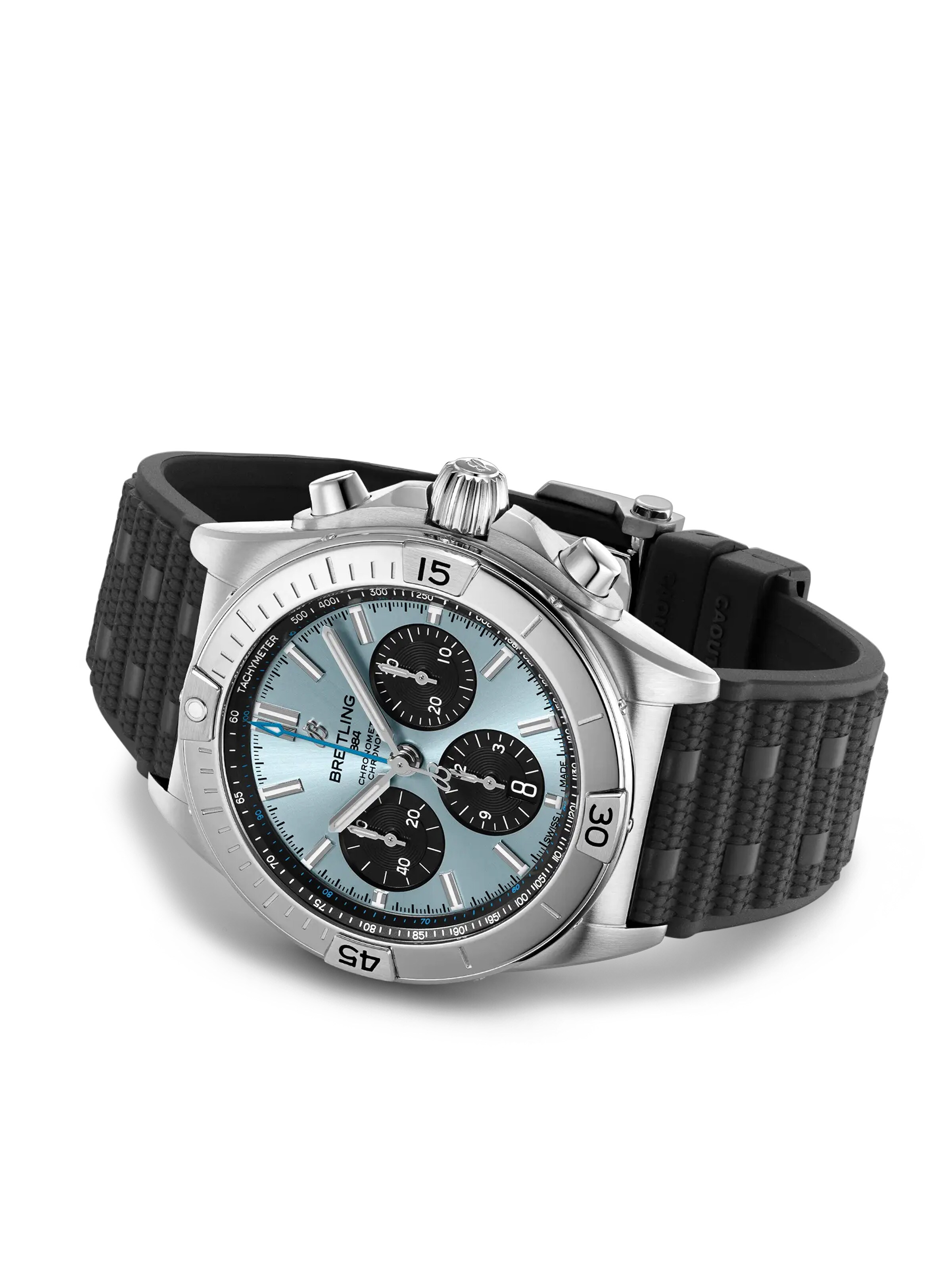 Chronomat B01 42 42 mm, Edelstahl mit schwarzem Kautschukarmband, Automatik-Manufakturkaliber Breitling B01 mit Chronographenfunktion und Datumsanzeige | Referenz-Nr. BL300152
