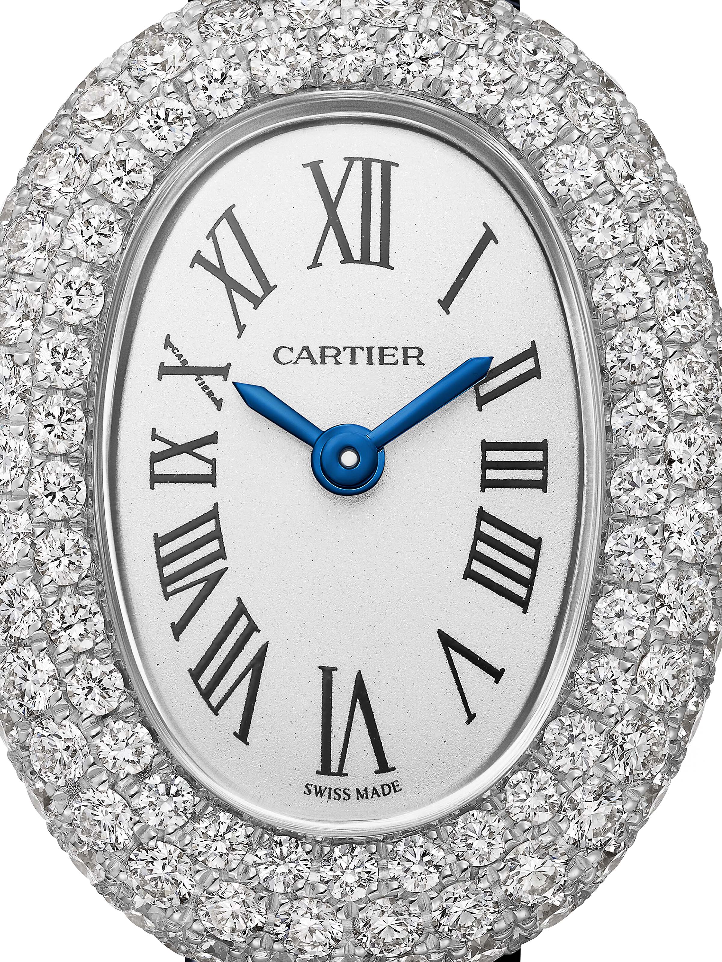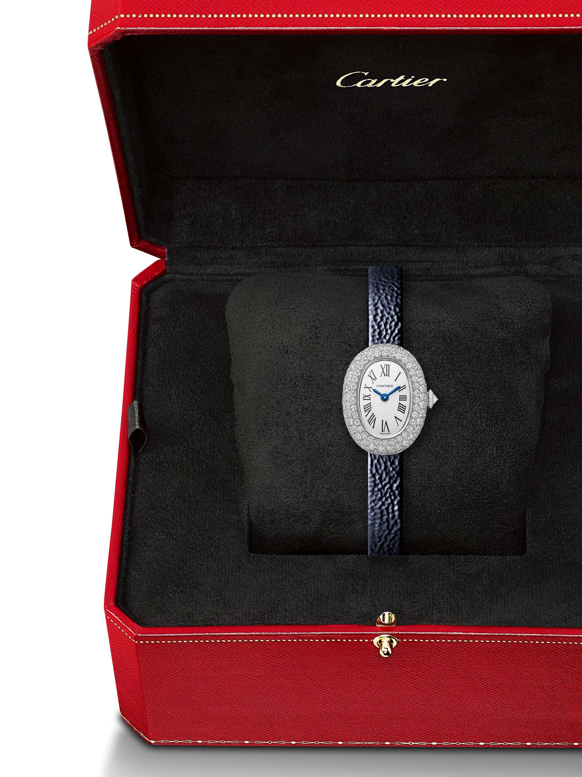 Baignoire - Mini Modell 24,6 x 18,7 mm, 18k Weißgold mit blauem Kalbslederarmband, Quarz-Kaliber | Referenz-Nr. CA220086