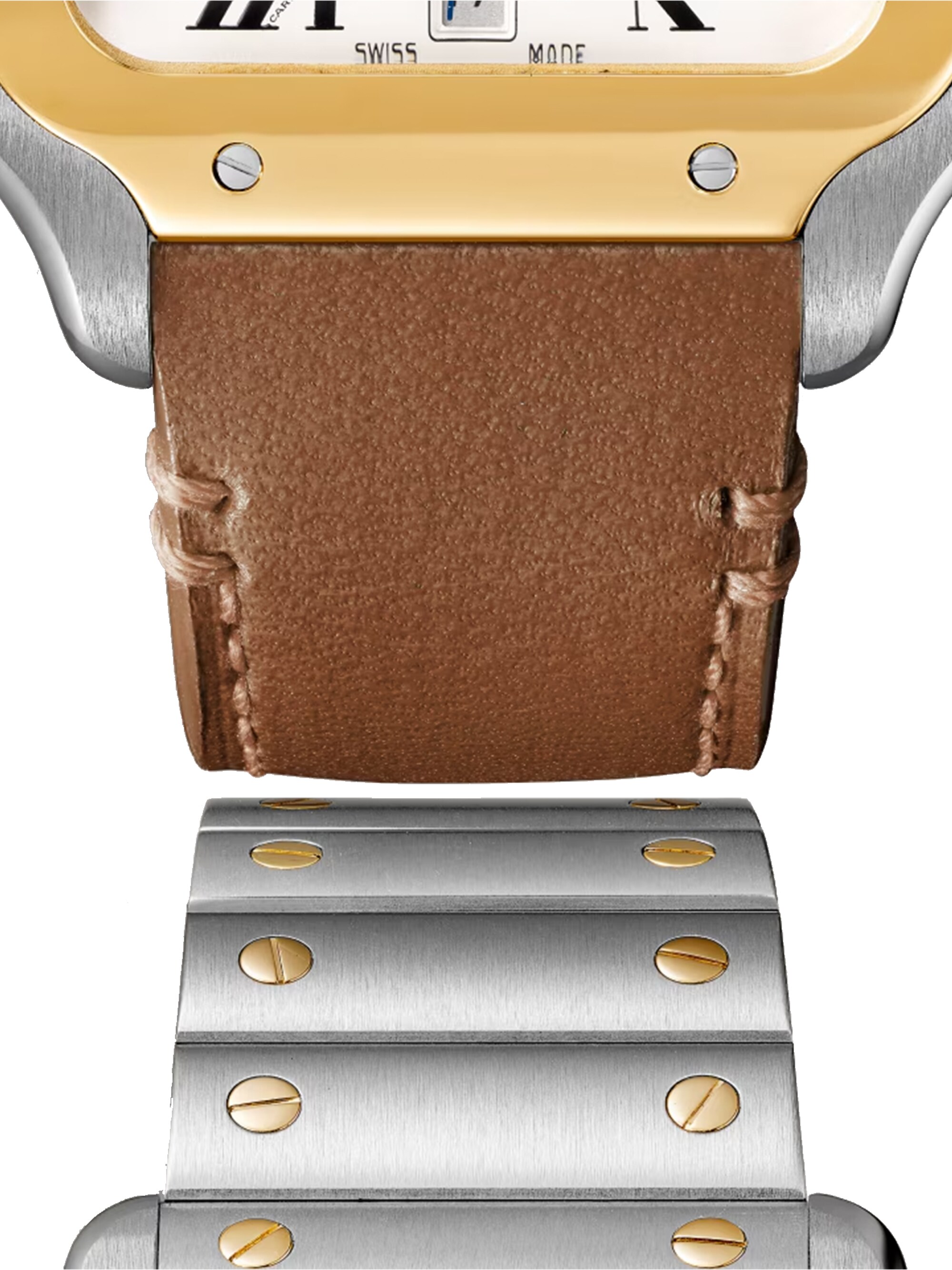 Santos de Cartier - großes Modell 39,8 x 47,5 mm, 18K Gelbgold/Edelstahl mit zusätzlichem Kalbslederarmband, Automatik-Kaliber 1847 MC mit Datumsanzeige | Referenz-Nr. CA410032