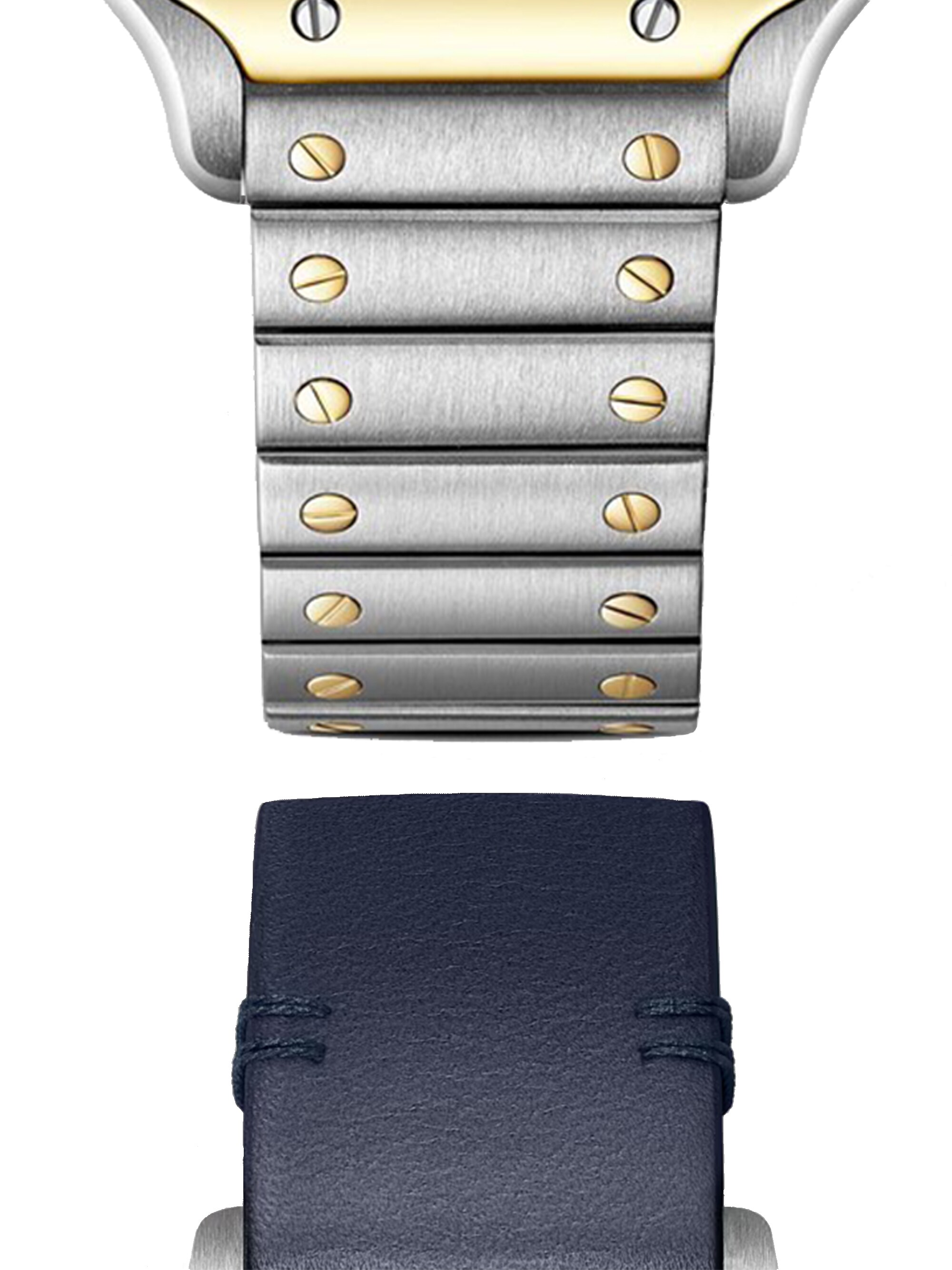 Santos de Cartier - kleines Modell 27 mm x 34,5 mm, Edelstalh und 18k Gelbgold mit zusätzlichem dunkelblauem Kalbslederarmband, Quarz-Kaliber | Referenz-Nr. CA400063