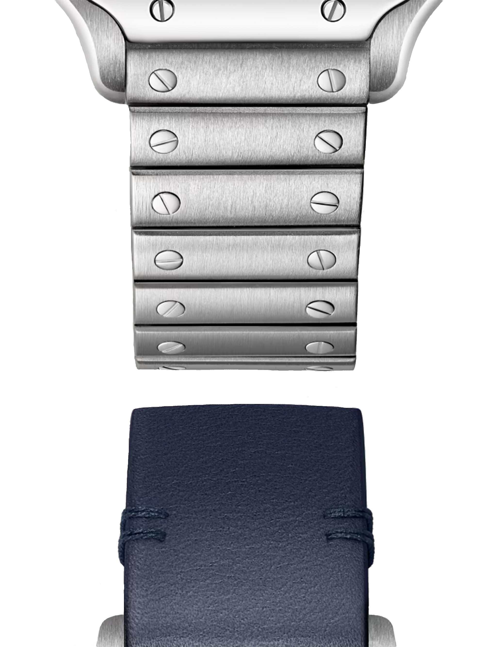 Santos de Cartier - kleines Modell 27 mm x 34,5 mm, Edelstahl mit zusätzlichem dunkelblauem Kalbslederarmband, Quarz-Kaliber | Referenz-Nr. CA400062