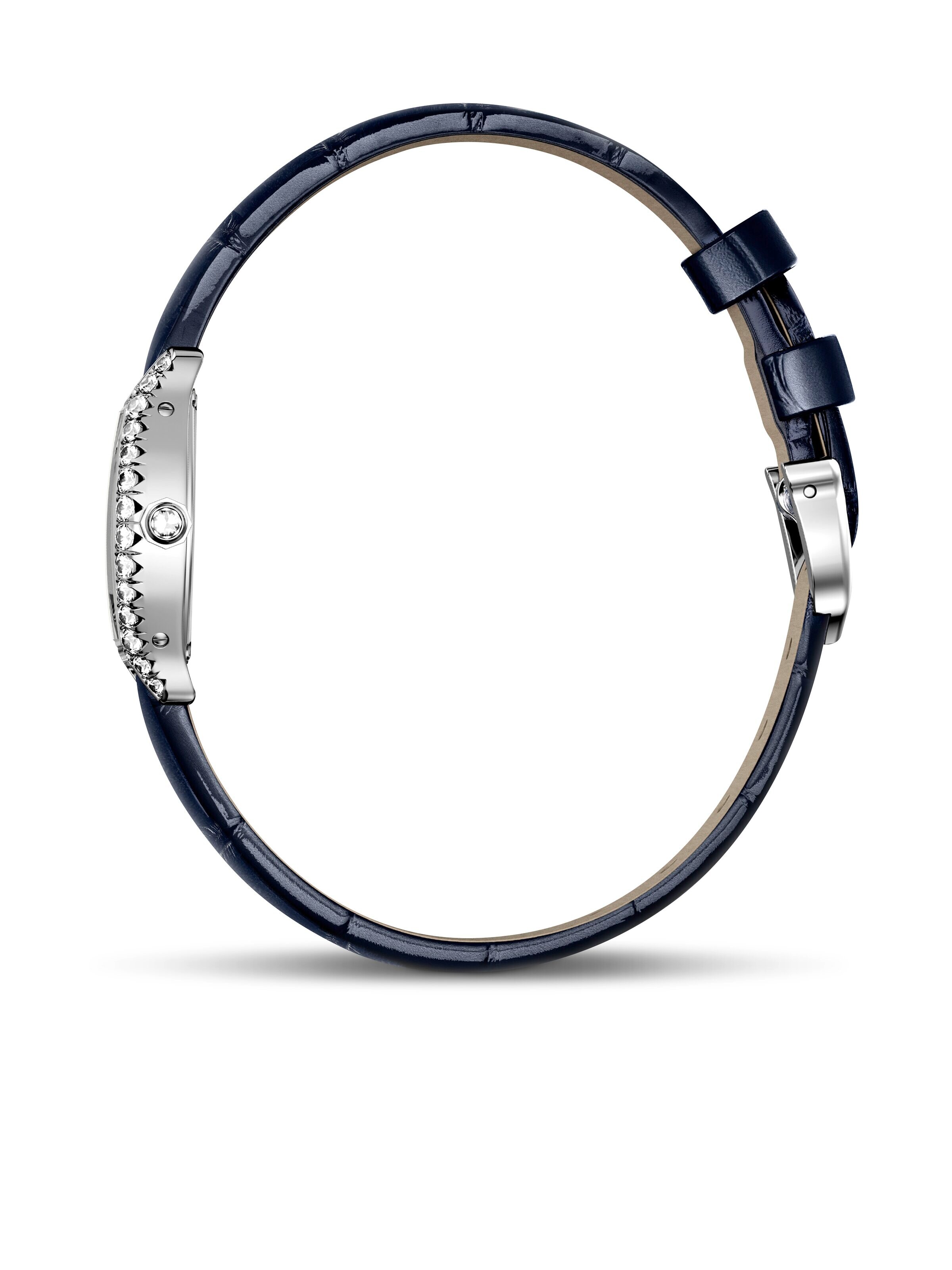 Diese Cartier Armbanduhr (Ref. WJTO0013) verbindet kostbare Materialien mit einer klaren, stilbewussten Ausstrahlung. Das Gehäuse aus 18k Weißgold fasst ein weißes Zifferblatt ein, welches mit römischen Ziffern und schlanken Zeigern eine elegante, leicht nostalgische Optik erzeugt. Ein widerstandsfähiges Saphirglas schützt die feine Gestaltung und sorgt für ungetrübte Sicht auf die Zeit. Im Inneren arbeitet ein präzises Quarzwerk, das eine zuverlässige und komfortable Nutzung ermöglicht. Das blaue Armband aus Alligatorleder bildet einen wirkungsvollen Kontrast zum hellen Zifferblatt und umschließt das Handgelenk weich und angenehm. Eine klassische Stiftschließe gewährleistet sicheren Halt und rundet den hochwertigen Eindruck ab. Mit einer Wasserdichtigkeit bis 3 bar eignet sich dieser luxuriöse Zeitmesser auch im Alltag, ohne an Eleganz einzubüßen. Eine Uhr, die dezente Raffinesse mit moderner Funktionalität vereint.