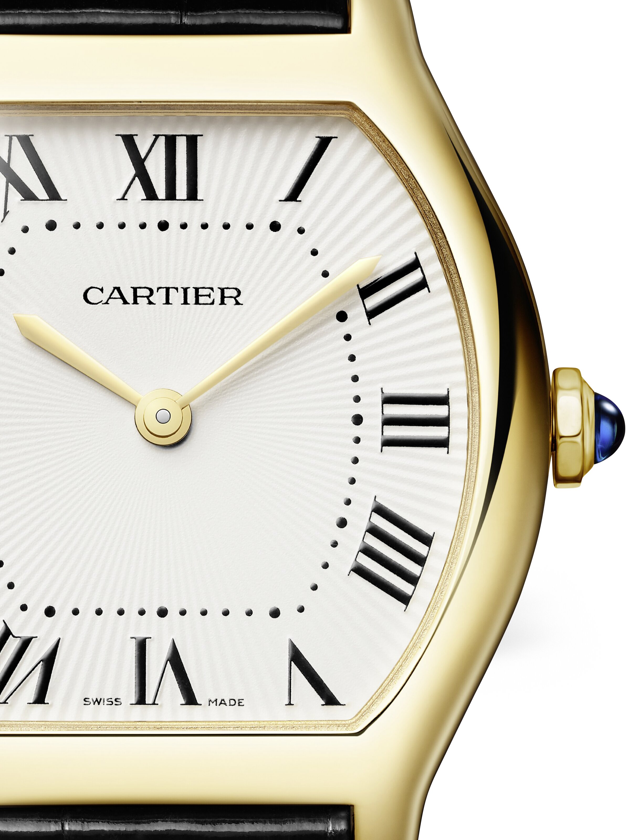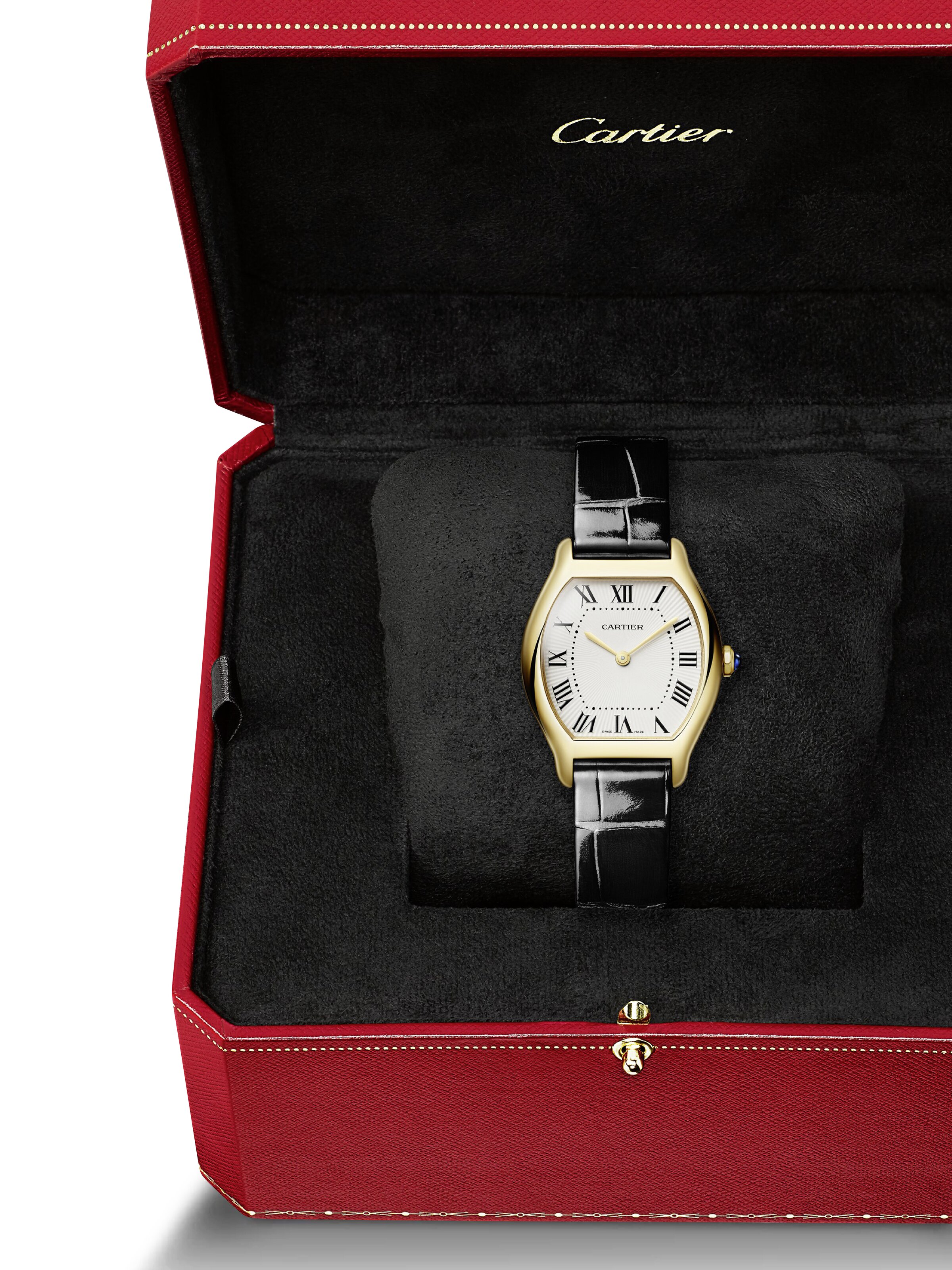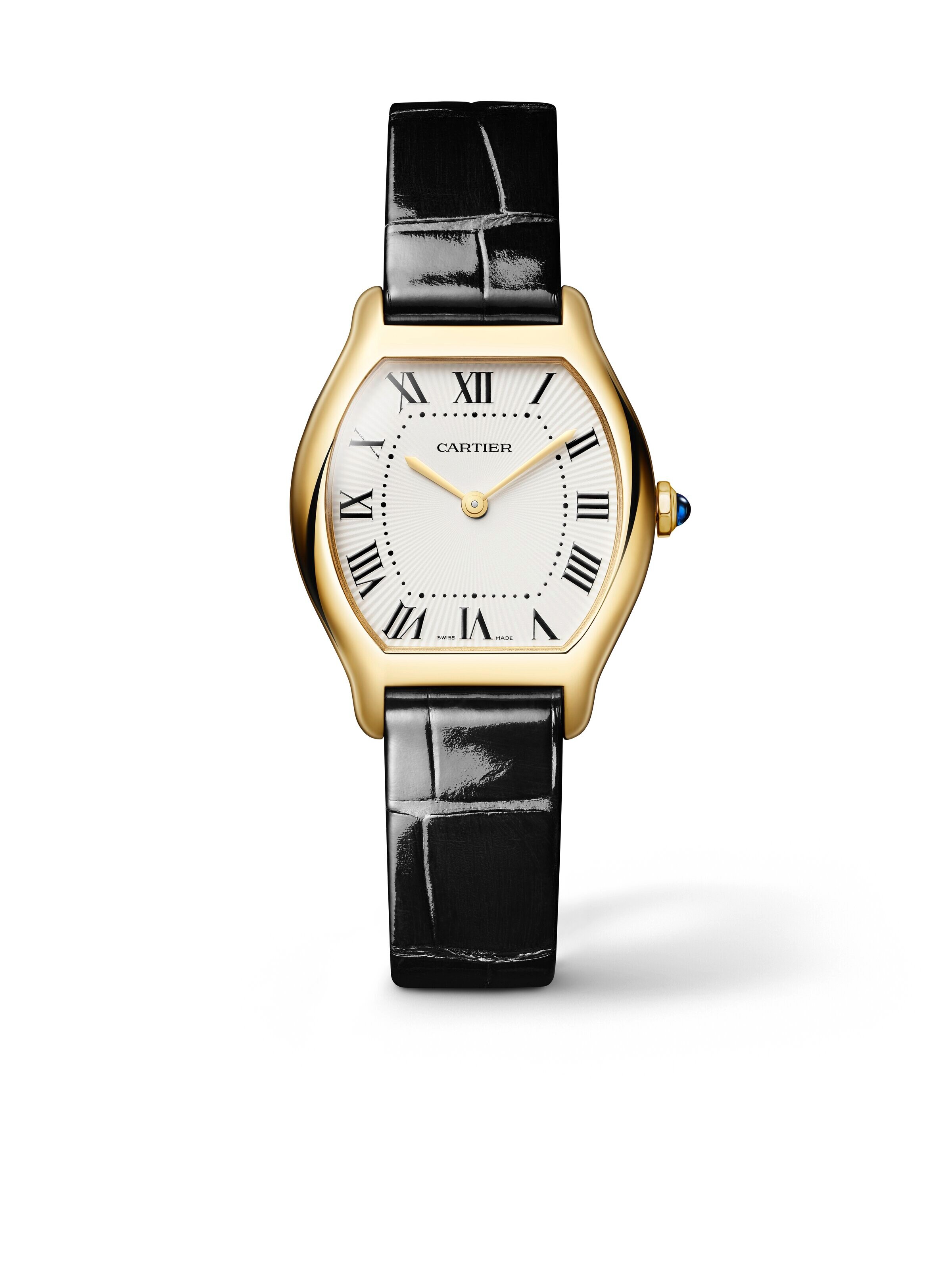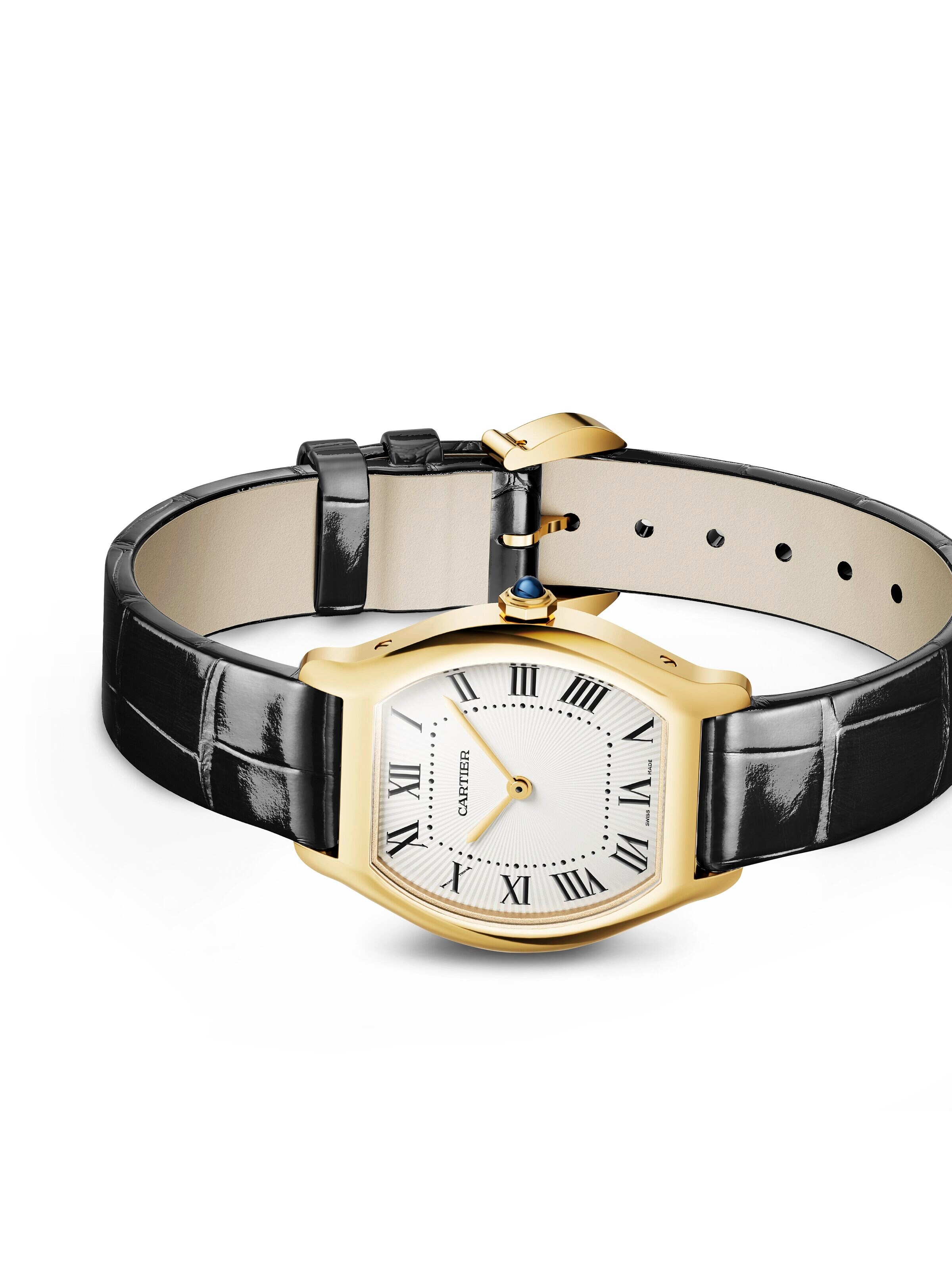 Cartier Tortue S/M 33,4 x 26,7 mm, 18k Gelbgold mit schwarzem Alligatorlederarmband, Quarz-Kaliber | Referenz-Nr. CA230042