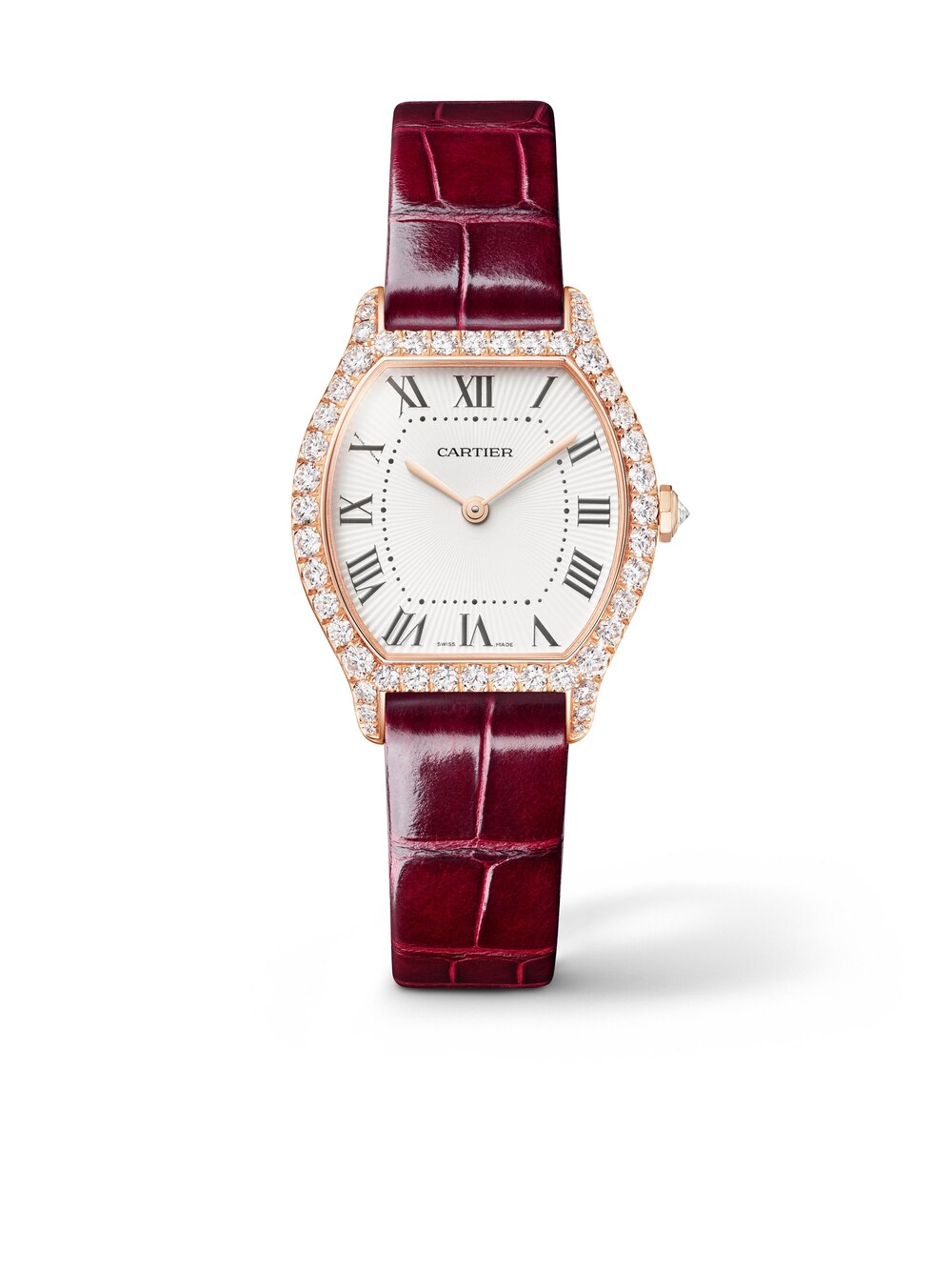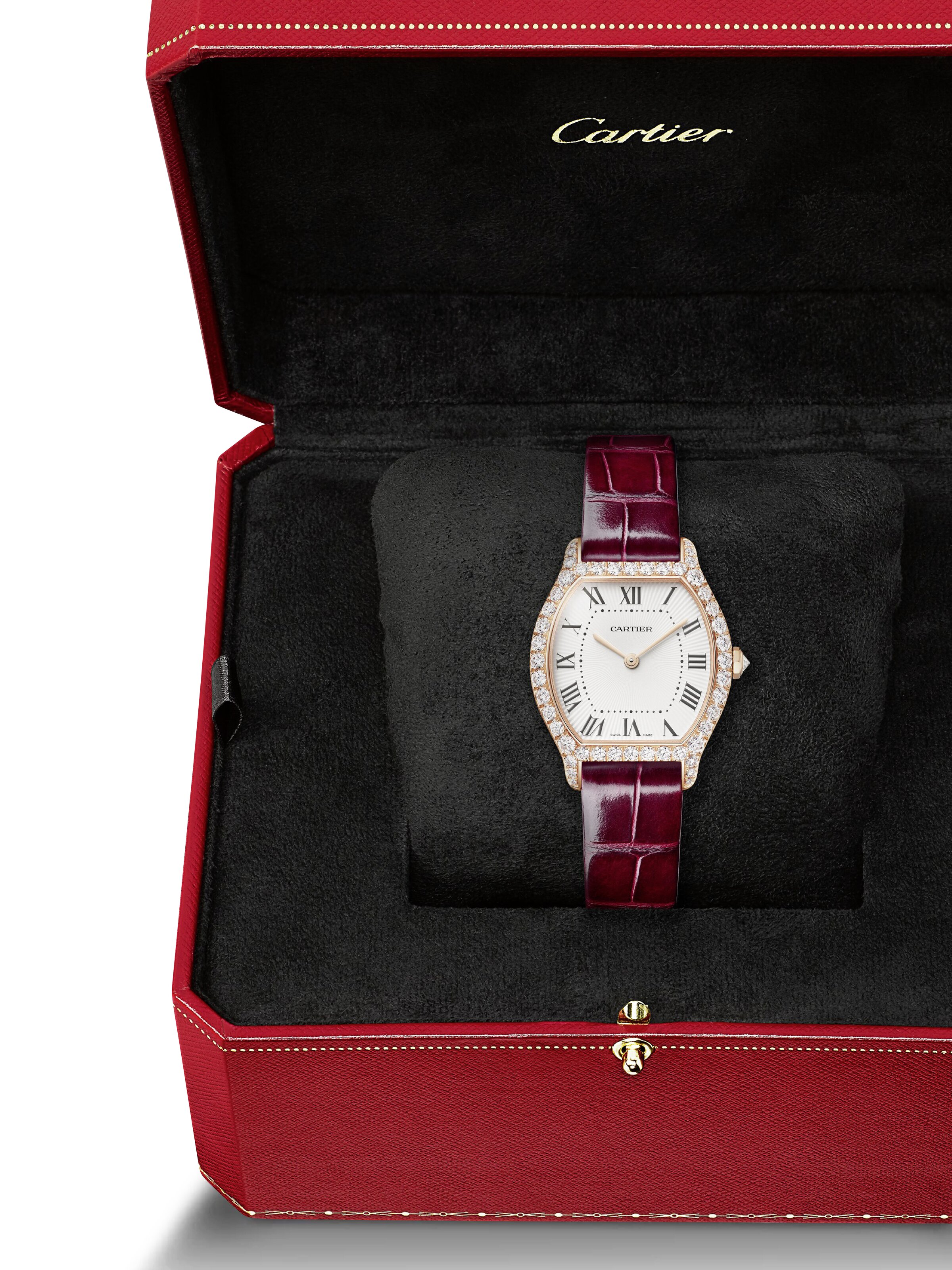 Cartier Tortue S/M 33,4 x 26,7 mm, 18k Roségold mit rotem Alligatorlederarmband, Quarz-Kaliber | Referenz-Nr. CA230039