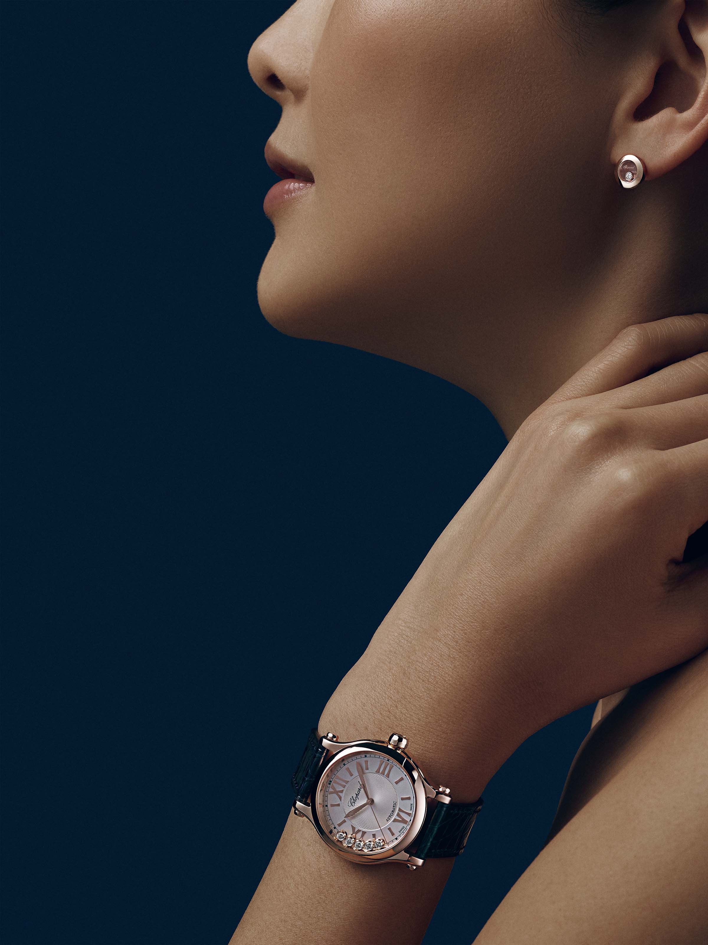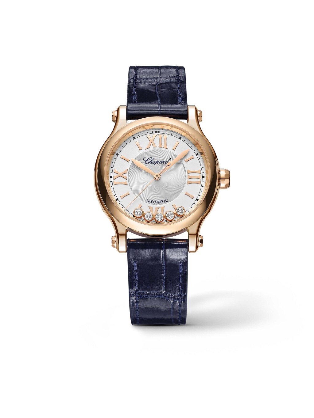 Happy Sport 33mm Automatic 33 mm, 18k Roségold mit blauem Alligatorlederramband, Automatik-Kaliber 09.01-C | Referenz-Nr. CH420082