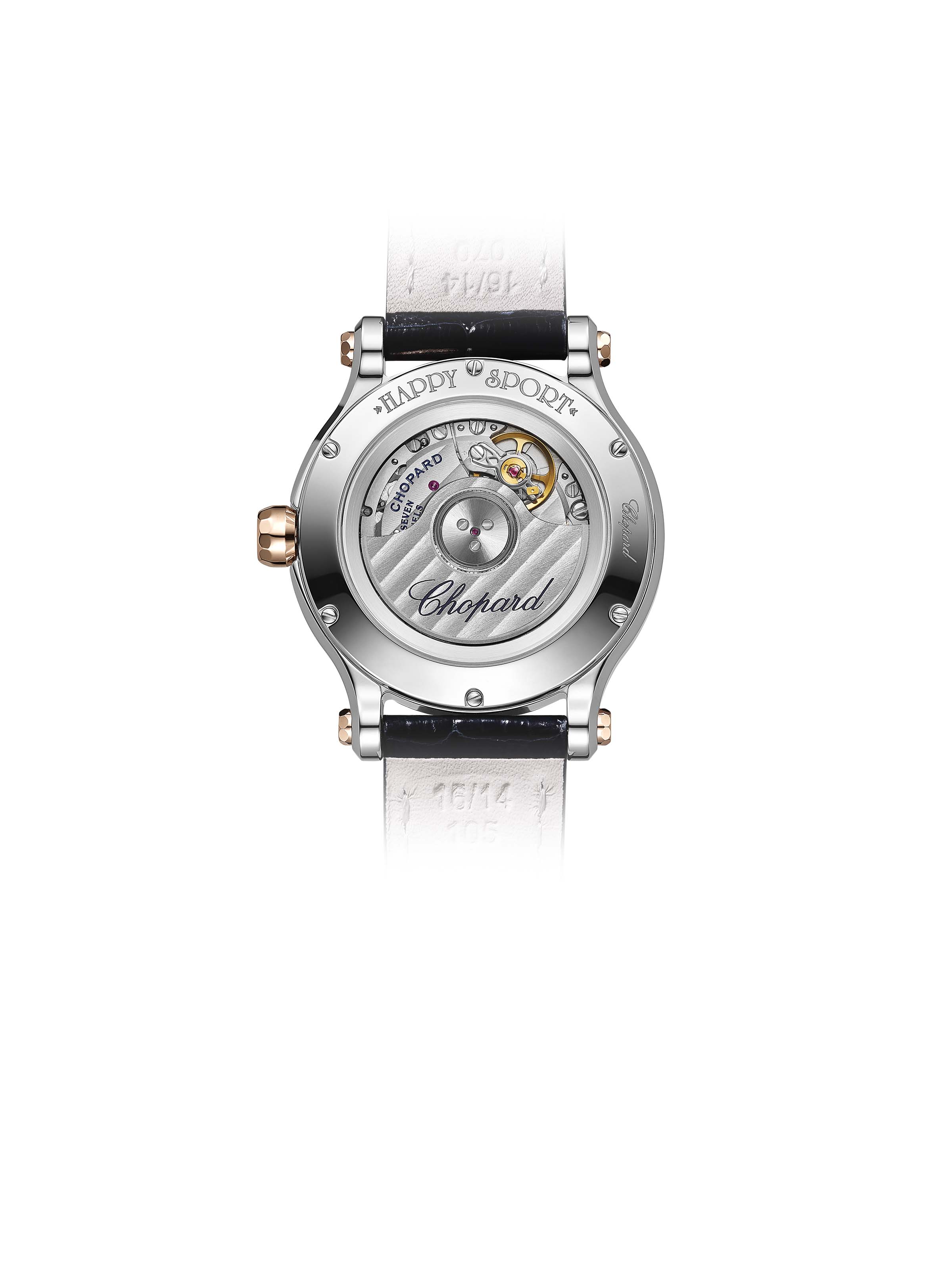 Happy Sport 33mm Automatic 33 mm, 18k Roségold und Edelstahl mit blauem Alligatorlederarmband, Automatik-Kaliber 09.01-C | Referenz-Nr. CH410071