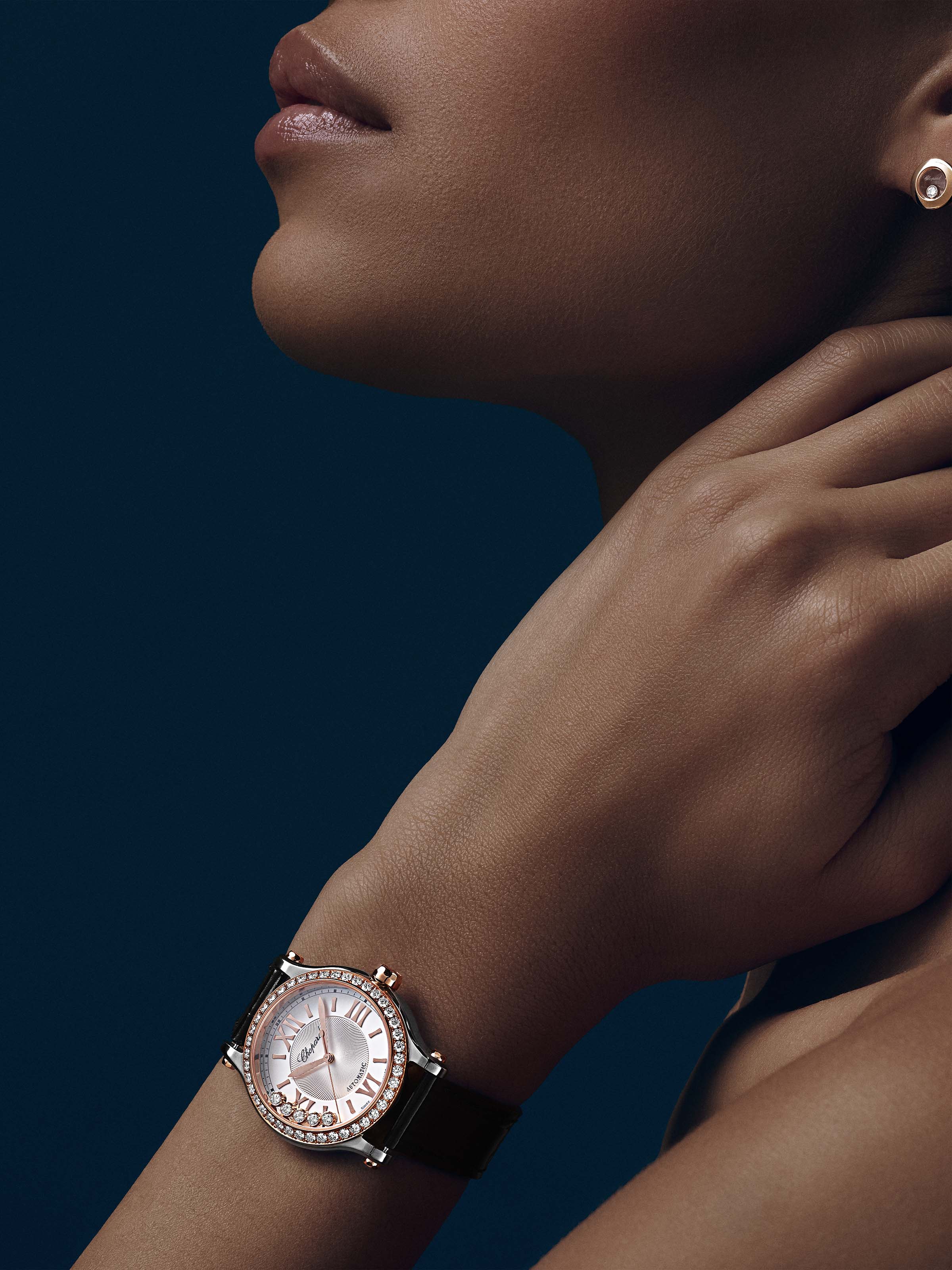 Edelstahl und Roségold – für diese elegante Verbindung steht die Happy Sport. In der Oval Automatic Ref. 278608-6003 tanzen sieben bewegliche Diamanten über ein silberfarbenes Zifferblatt und verleihen der Uhr ihren unverwechselbaren Charme. Die Dreizeigeruhr mit römischen Ziffern misst 33 Millimeter im Durchmesser und wird von einem Automatik-Manufakturkaliber angetrieben. Im Inneren sorgt das Chopard 09.01-C Werk für Präzision und eine Gangreserve von 42 Stunden. Das Saphirglas schützt das Zifferblatt, während das blaue Alligatorlederarmband mit klassischer Stiftschließe einen stilvollen Farbakzent setzt – feminin, verspielt und zeitlos zugleich.