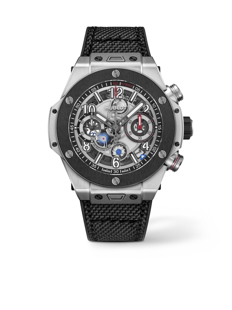 Big Bang Unico Reloaded Titanium Ceramic 44 mm, Titan mit schwarzem Kautschukarmband mit Textilauflage, Automatik-Manufakturkaliber HUB1280 mit Flyback-Chronographenfunktion und Datumsanzeige | Referenz-Nr. HB050319