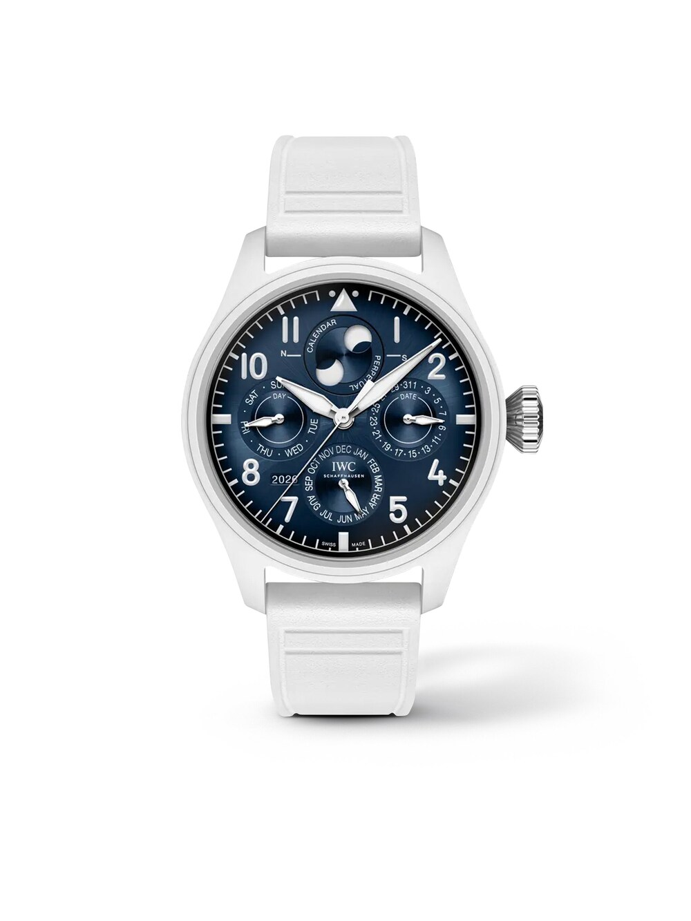 Big Pilot’s Watch Perpetual Calendar ProSet Le Petit Prince 42,9 mm, Keramik mit weißem Kautschukarmband, Automatik-Manufakturkaliber 82665 mit ewigem Kalender und Mondphasenanzeige | Referenz-Nr. IW410167