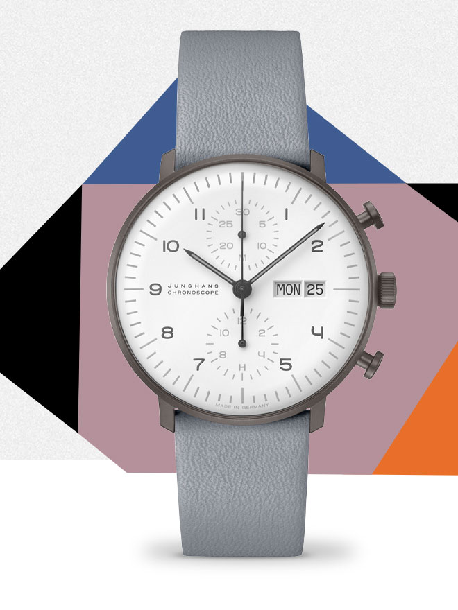 Eine Uhr musste für Max Bill in erster Linie gut ablesbar sein. Das Zifferblatt der Junghans Max Bill weist deshalb eine Minutenskala mit etwas längeren Strichen und – bei manchen Modellen – arabischen Ziffern für die Stunden sowie drei gut voneinander unterscheidbare Zeiger auf. Die Typographie von Max Bill erkennt man bis heute an der Ziffer Vier besonders deutlich. Heute fertigt Junghans seinen seit 1997 wieder aufgelegten Klassiker in vielen Varianten: mit Automatik- oder Handaufzugswerk, mit Zifferblättern in Bonbonfarben oder im schlichten Weiß sowie Schwarz, mit gesteppten und glatten Lederarmbändern oder Lederarmbändern in Filzstruktur sowie Edelstahlarmbändern.
