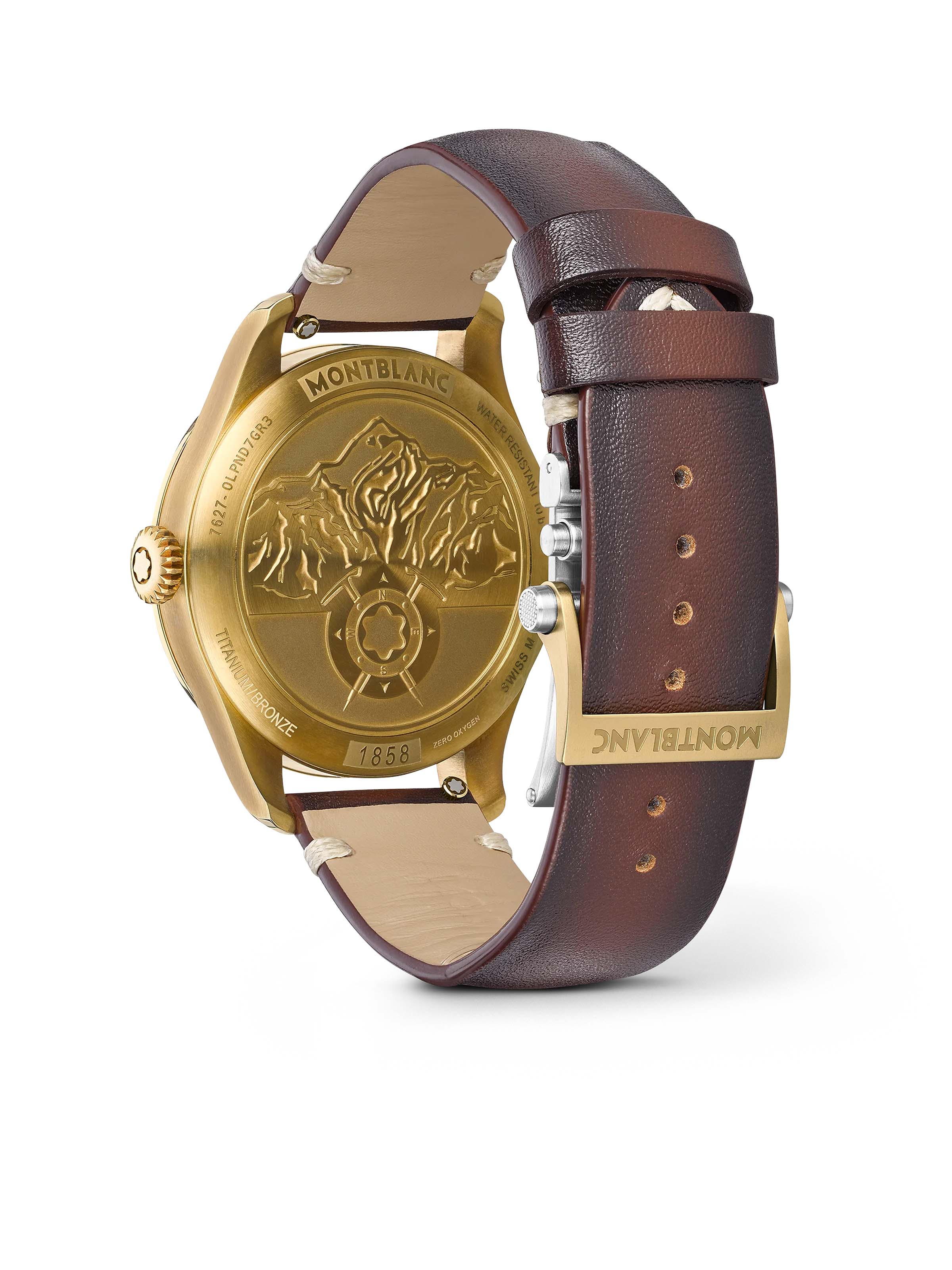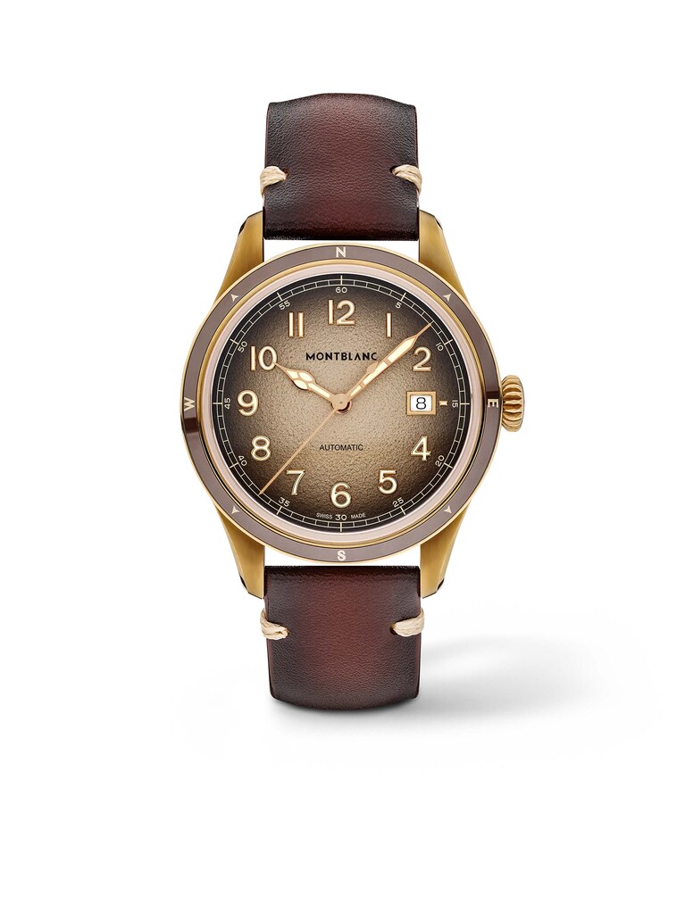 Montblanc 1858 Automatic Date 0 Oxygen 41 mm, Bronze mit braunem Lederarmband, Automatik-Kaliber MB 24.17 mit Datumsanzeige | Referenz-Nr. MB000079