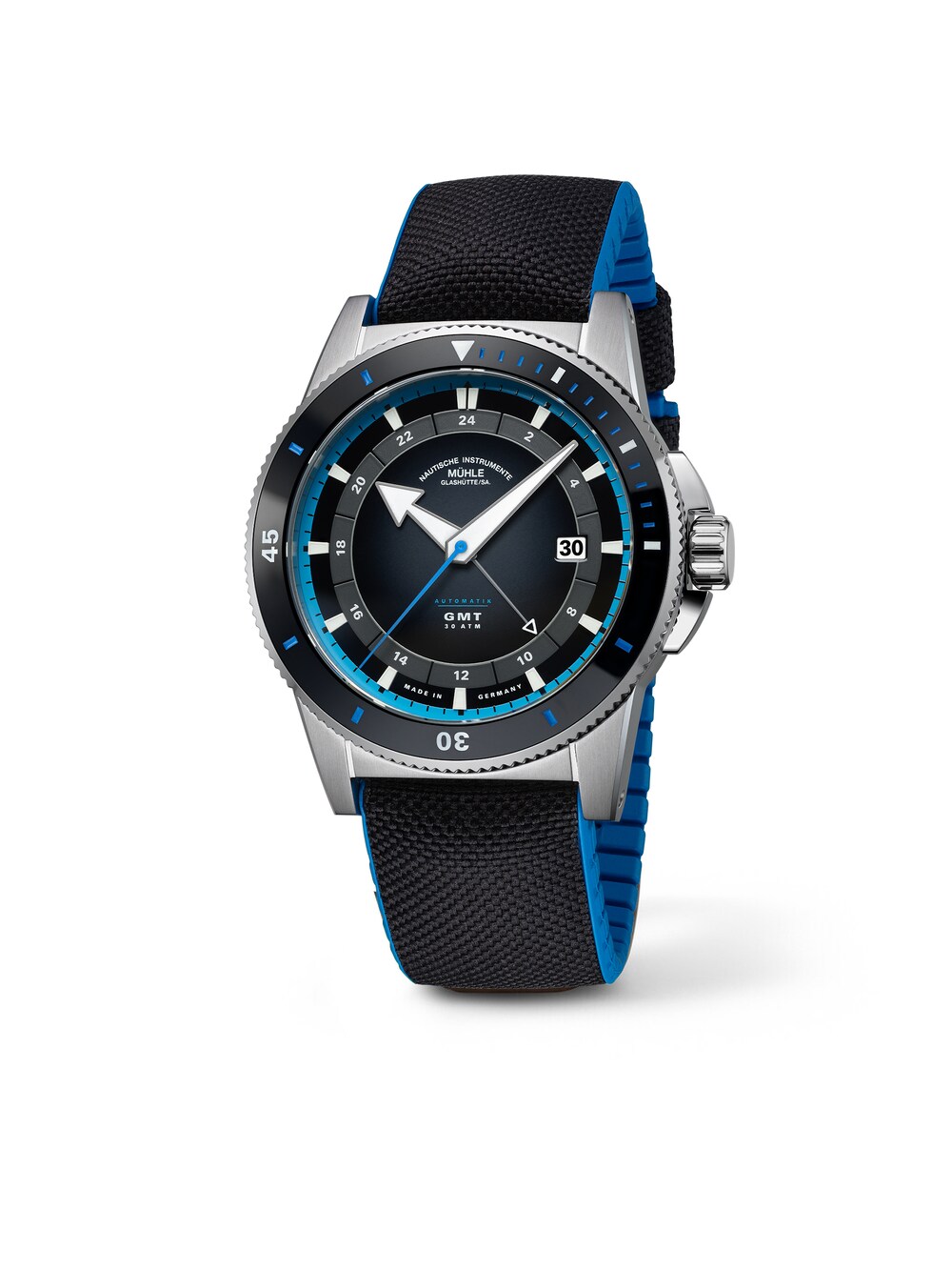 Sportivo Travel GMT 42,5 mm, Edelstahl mit schwarzem Kautschukarmband, Automatik-kaliber SW 330-2 mit zweiter Zeitzone und Datumsanzeige | Referenz-Nr. MG600003