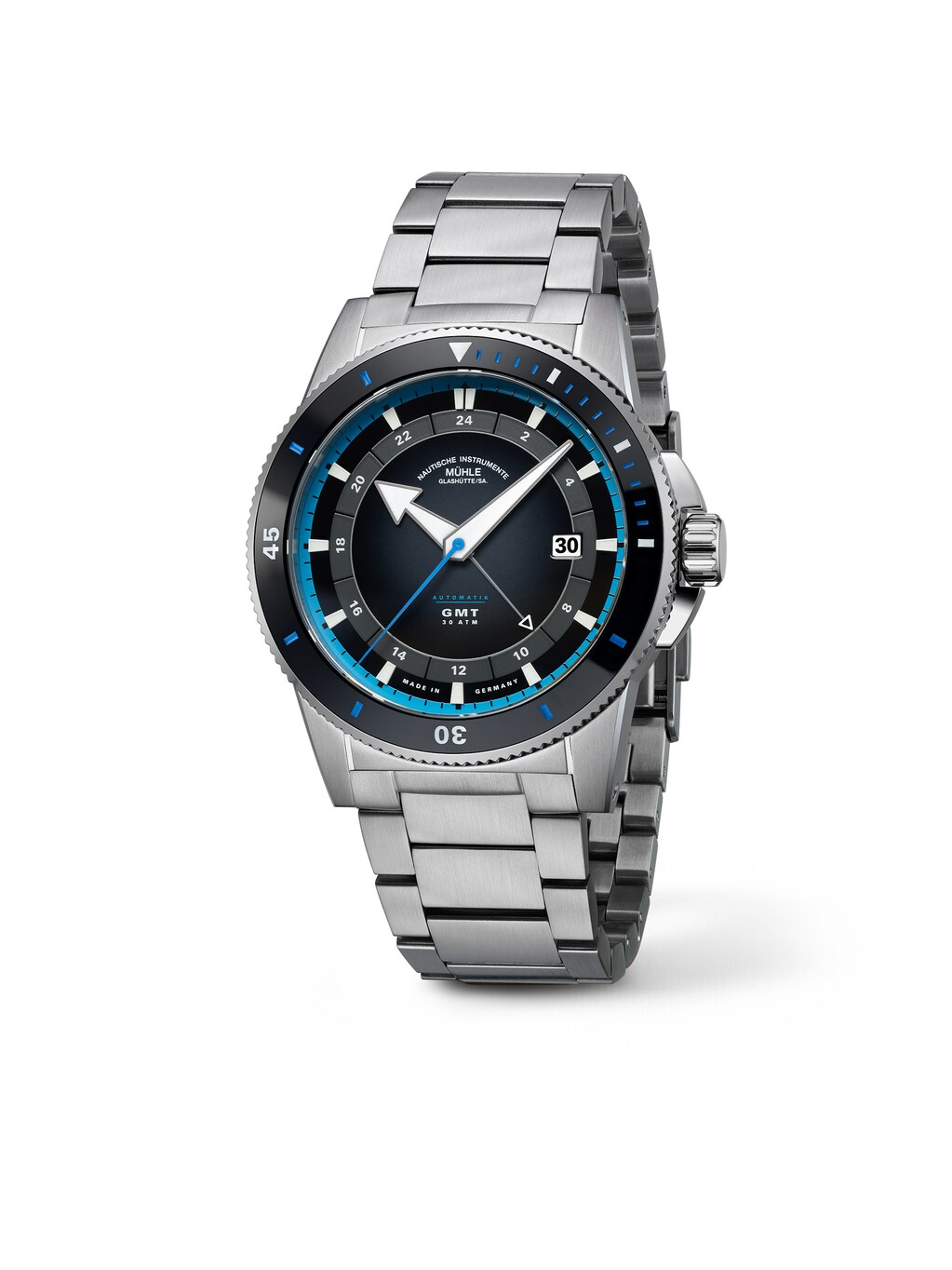 Die Mühle Glashütte Sportivo ist eine Uhr, die nicht nur durch ihre Funktionalität, sondern auch durch ihr markantes Design besticht. Mit einem Durchmesser von 42,5 Millimetern und einem robusten Edelstahlgehäuse ist sie ein Ausdruck von Stärke und Präzision. Das schwarze Zifferblatt unterstreicht die maskuline Eleganz, während die Indizes für klare Lesbarkeit sorgen. Ein Highlight ist die 2. Zeitzone, welche die Uhr nicht nur für den Alltag, sondern auch für den globalen Reisenden unverzichtbar macht. Die Keramiklünette fügt eine zusätzliche Ebene der Haltbarkeit hinzu. Ein Sichtboden aus Saphirglas gewährt Einblicke in das Innere der Uhr, wo das Automatikwerk SW 330-2 mit einer beeindruckenden Gangreserve von 56 Stunden tickt. Das Edelstahlarmband mit Faltschließe garantiert einen sicheren und komfortablen Sitz am Handgelenk. Wasserdicht bis zu 30 bar, ist diese Uhr für jedes Abenteuer gerüstet.