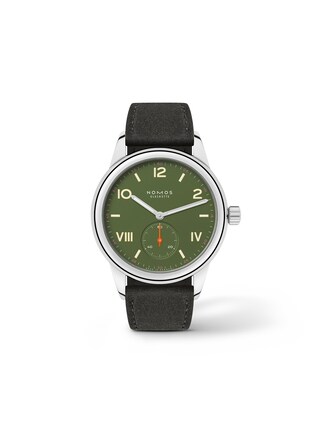 Die Nomos Club Campus Ref. 707 verbindet frische Farbgebung mit der klaren Gestaltungskunst der Glashütter Manufaktur. Das grüne Zifferblatt setzt einen modernen Akzent, der durch das anthrazitfarbene Armband stilsicher aufgegriffen wird und am Handgelenk eine lässig-elegante Präsenz entfaltet. Mit einem Durchmesser von 36 Millimeter zeigt sich die Uhr ausgewogen proportioniert und eignet sich hervorragend für den Alltag wie für besondere Gelegenheiten. Im Inneren arbeitet das Manufakturkaliber DUW 4001 mit Handaufzug, welches eine Gangreserve von 53 Stunden bietet und für präzise Zeitmessung steht. Die kleine Sekunde sorgt für eine lebendige Zifferblattgestaltung und erleichtert die Zeitkontrolle auf einen Blick. Gehäuse, Lünette und Boden bestehen aus Edelstahl und verleihen dem Modell Robustheit sowie eine wertige Anmutung. Dank einer Wasserdichtigkeit von 10 bar und dem widerstandsfähigen Saphirglas erweist sich diese Armbanduhr als zuverlässiger Zeitmesser, der anspruchsvollen Alltagssituationen souverän standhält.
