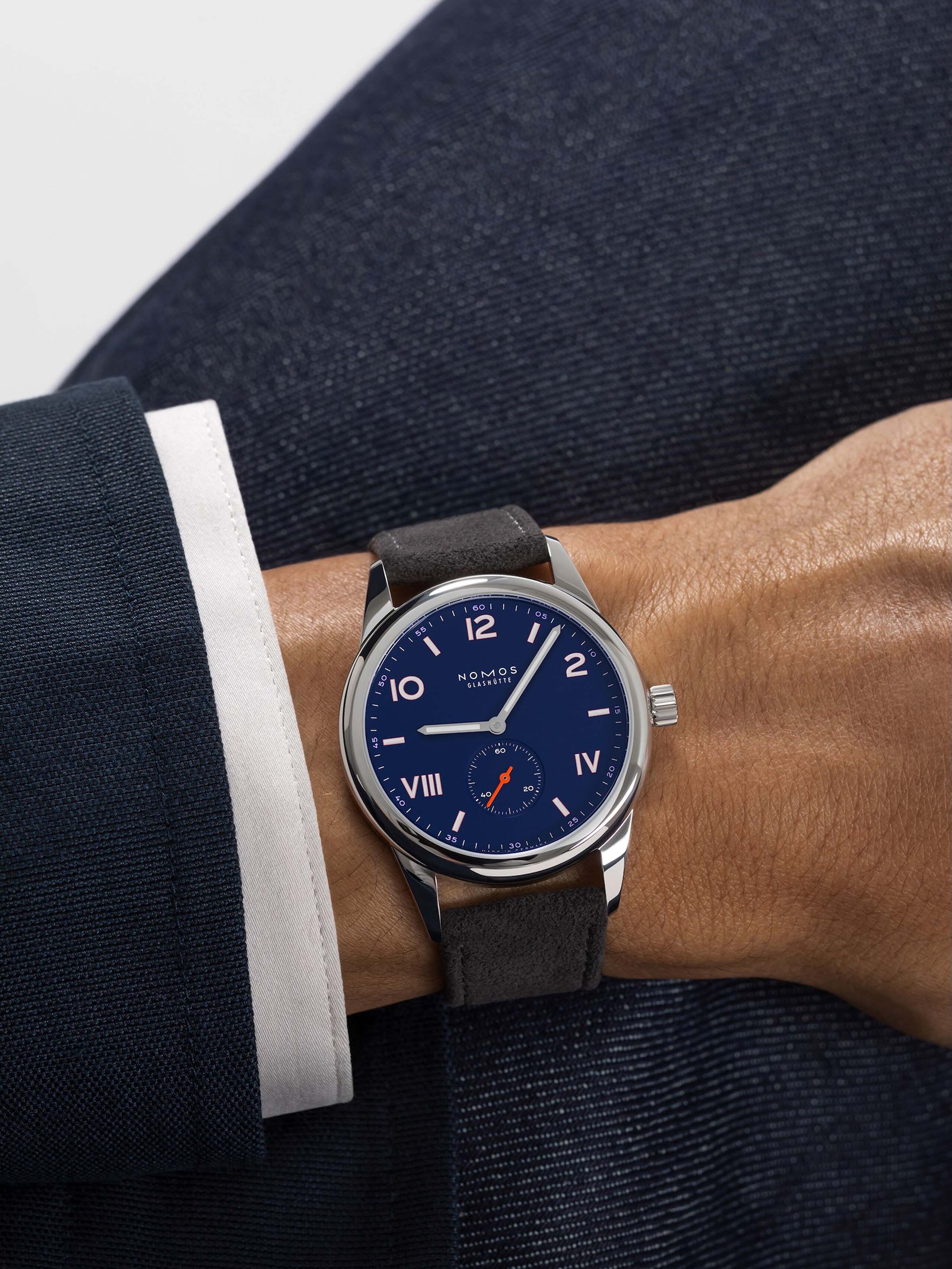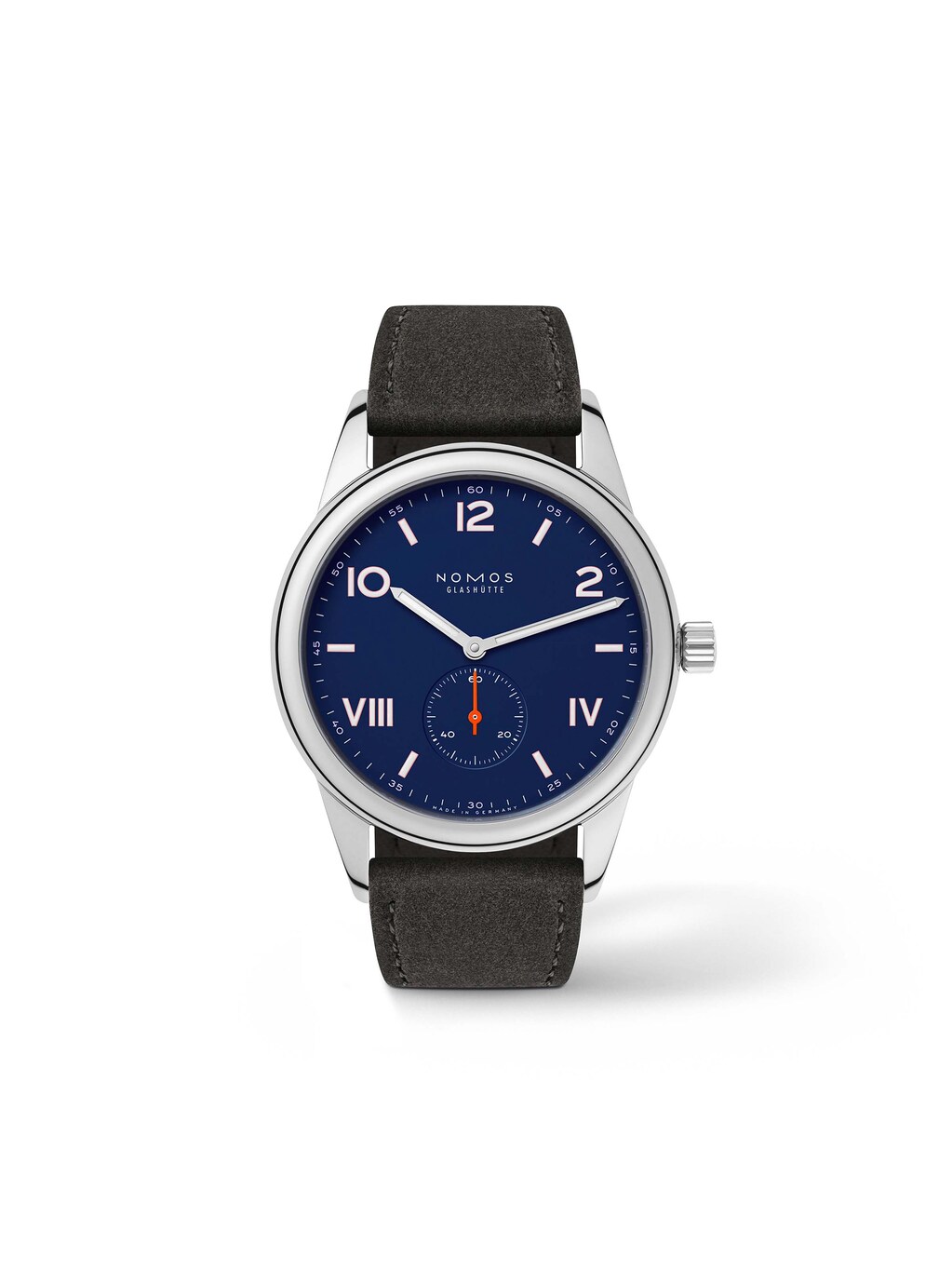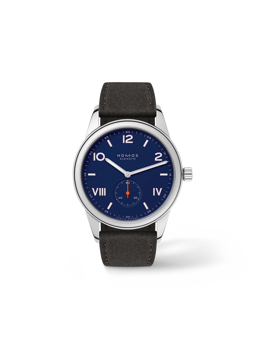 Club Campus Night Sky 38,5 mm, Edelstahl mit anthrazitfarbenen Velourslederarmband, Handaufzug-Manufakturkaliber Alpha mit kleiner Sekunde | Referenz-Nr. NO150095