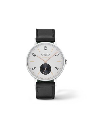 Die Tangente 144.S1, exklusiv bei Wempe und streng limitiert auf nur 100 Stück, verkörpert die Essenz zeitloser Eleganz in einem Unisex-Design. Nomos Glashütte, bekannt für seine puristische Ästhetik und präzise Manufakturwerke, hat mit diesem Modell ein Meisterwerk geschaffen. Das 38,5 Millimeter große Edelstahlgehäuse umschließt ein Zifferblatt in Weiß und Grau, welches die Zeit mit arabischen Ziffern und Indexen markiert. Im Herzen der Uhr schlägt das DUW3001 Kaliber, ein Automatikwerk mit einer Gangreserve von 43 Stunden, sichtbar durch den Saphirglasboden. Das schwarze Cordovan-Lederarmband mit Stiftschließe fügt sich nahtlos in das elegante Gesamtbild ein. Mit einer Wasserdichtigkeit von 5 bar ist diese Uhr nicht nur ein Ausdruck von Stil, sondern auch von technischer Raffinesse. Die Tangente 144.S1 ist eine Hommage an die Kunst der Uhrmacherei und ein wahres Sammlerstück.